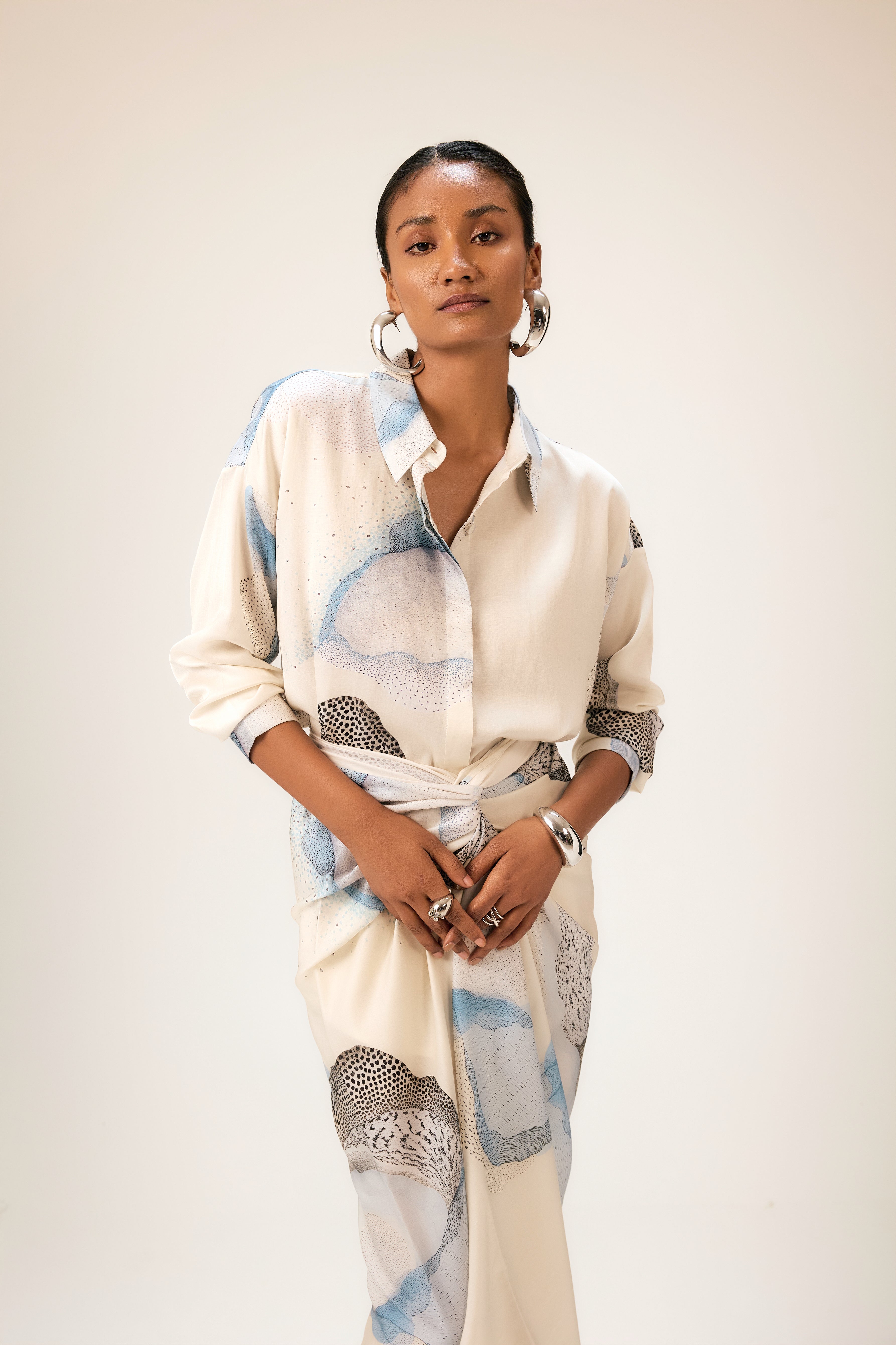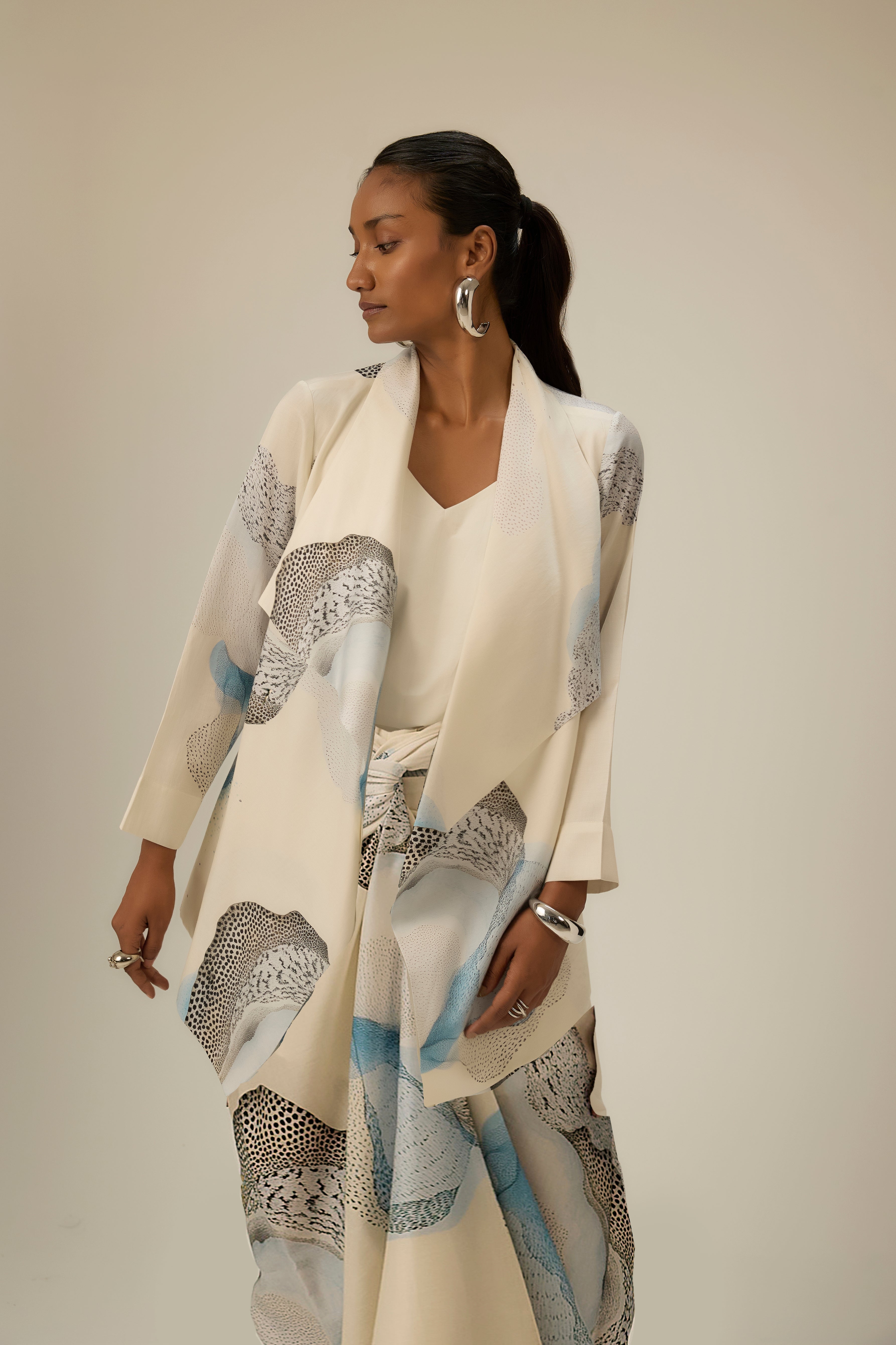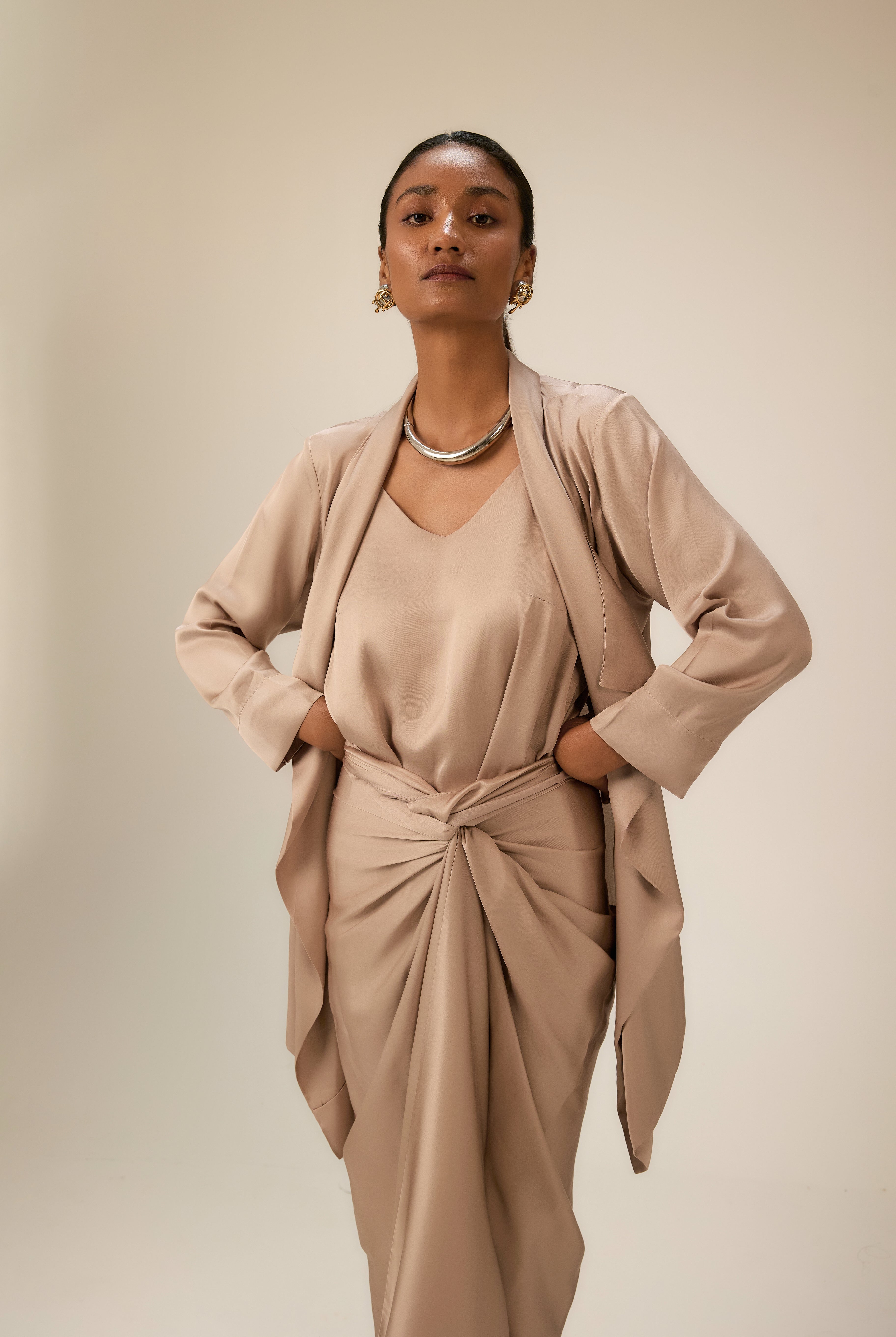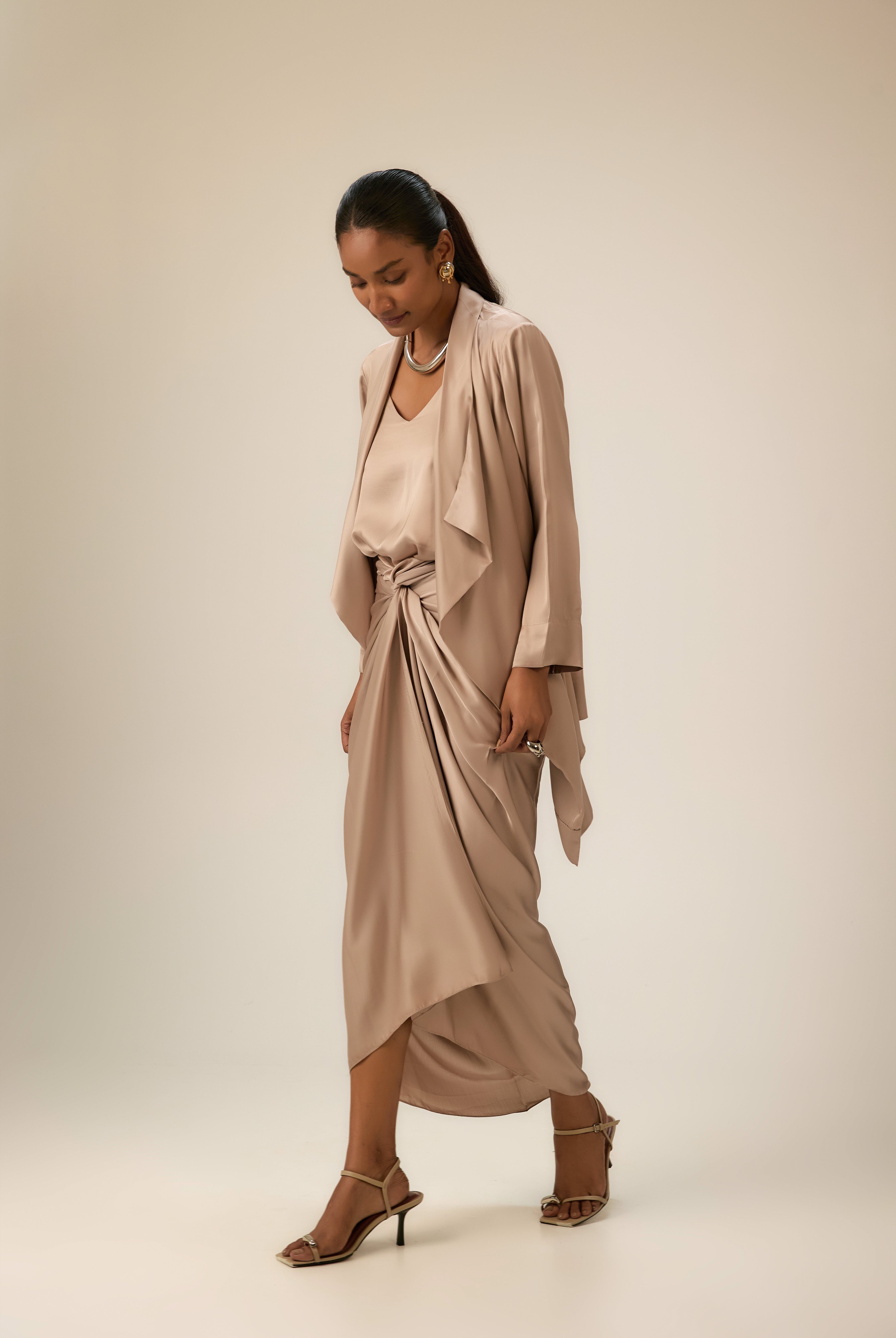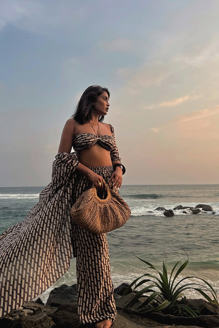 This collection was born from a moment of stillness, watching the ocean transform under the golden hues of the sun. It is a celebration of that transformation. Of movement, of fluidity, of the interplay between strength and serenity. Through textures, colours, and silhouettes, it captures the poetry of water and light, the way they dance, evolve, and tell their own story.