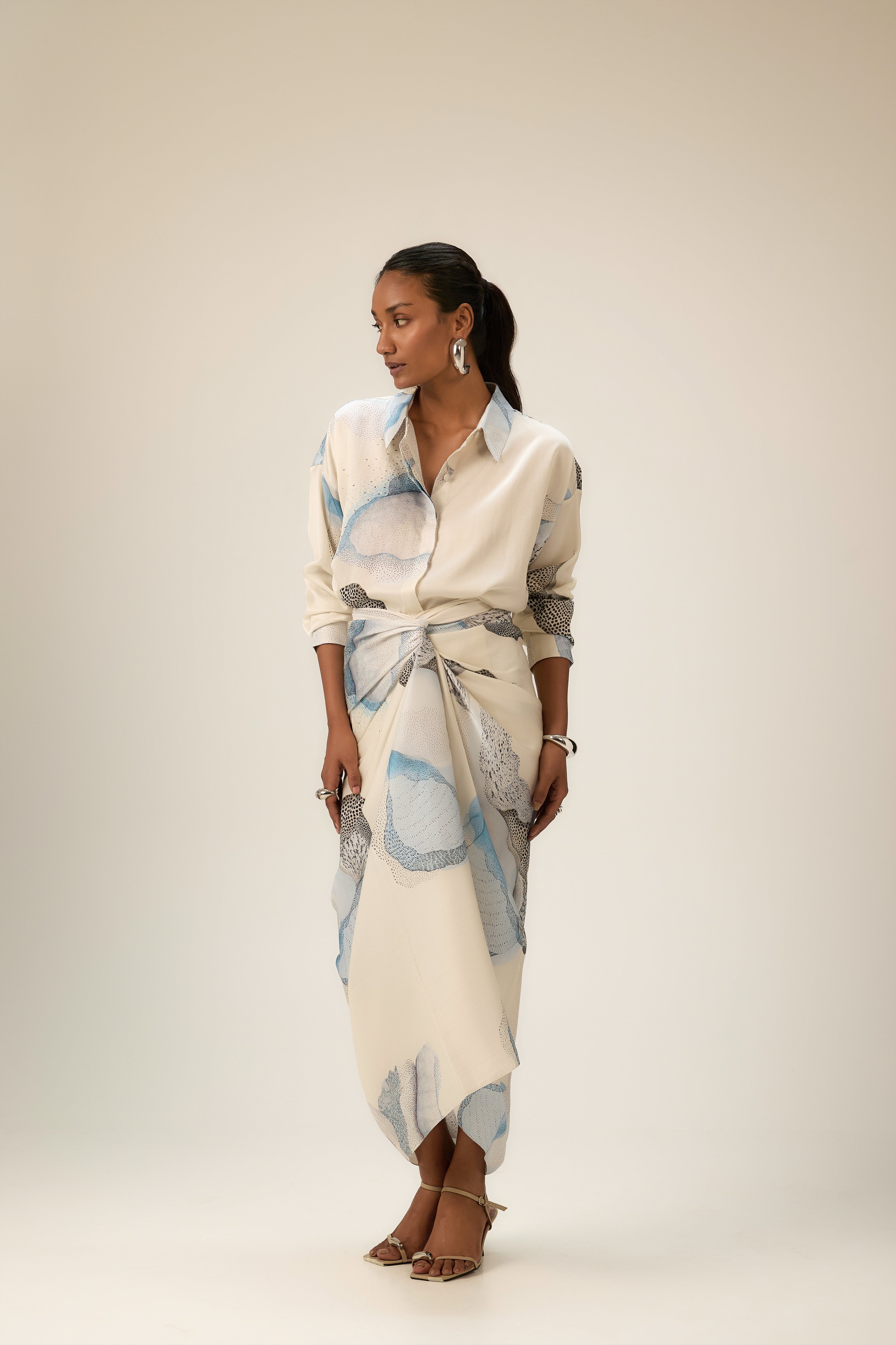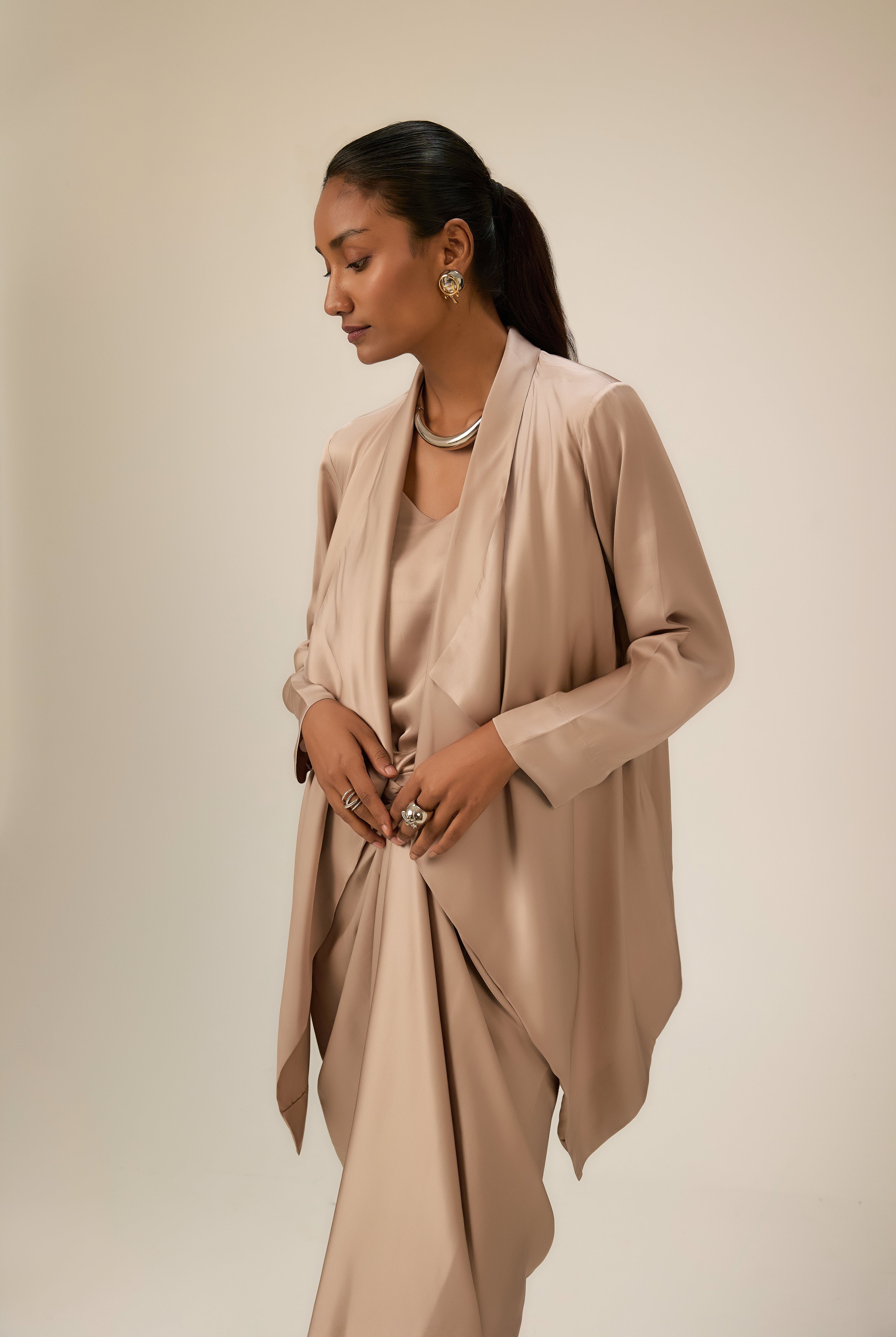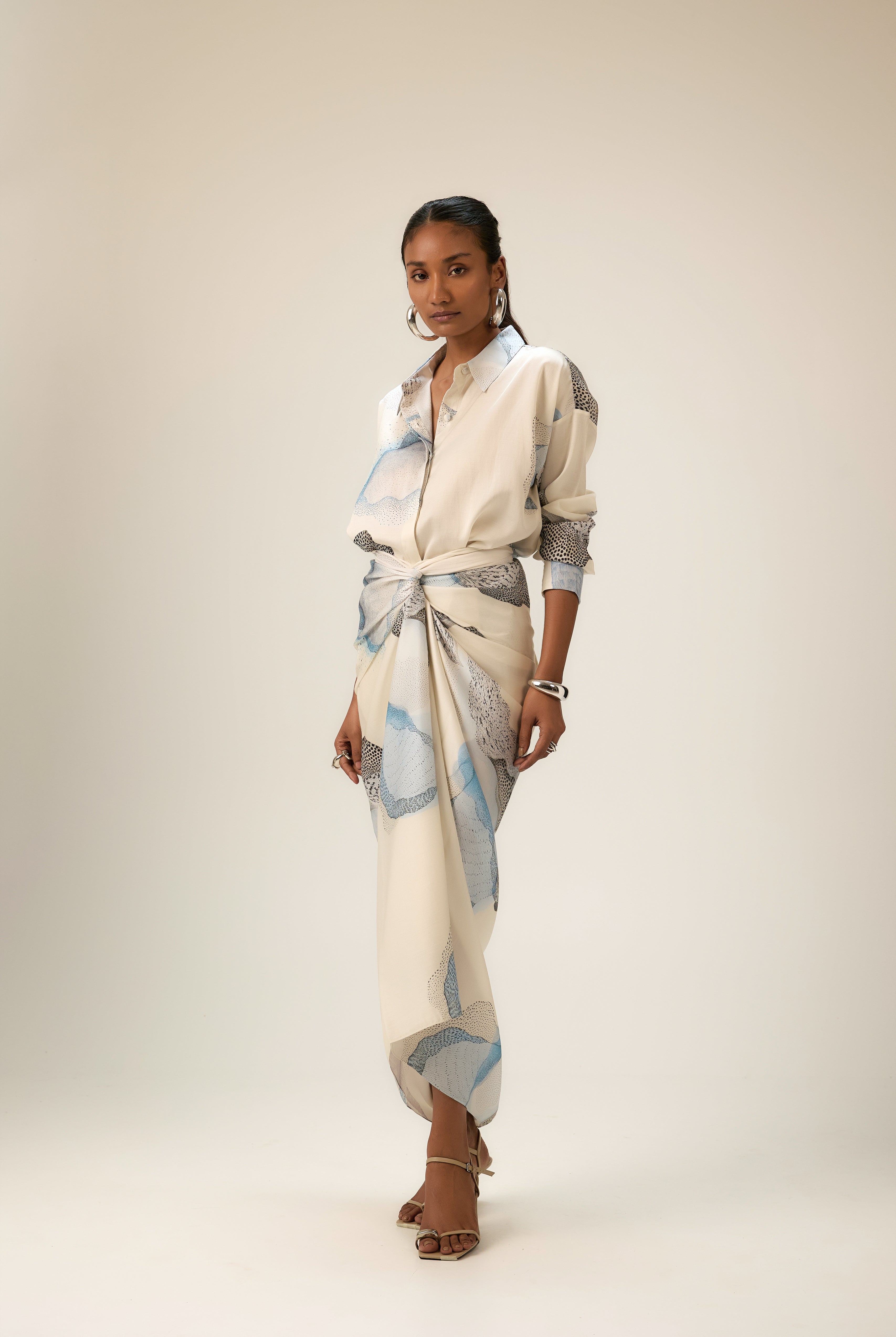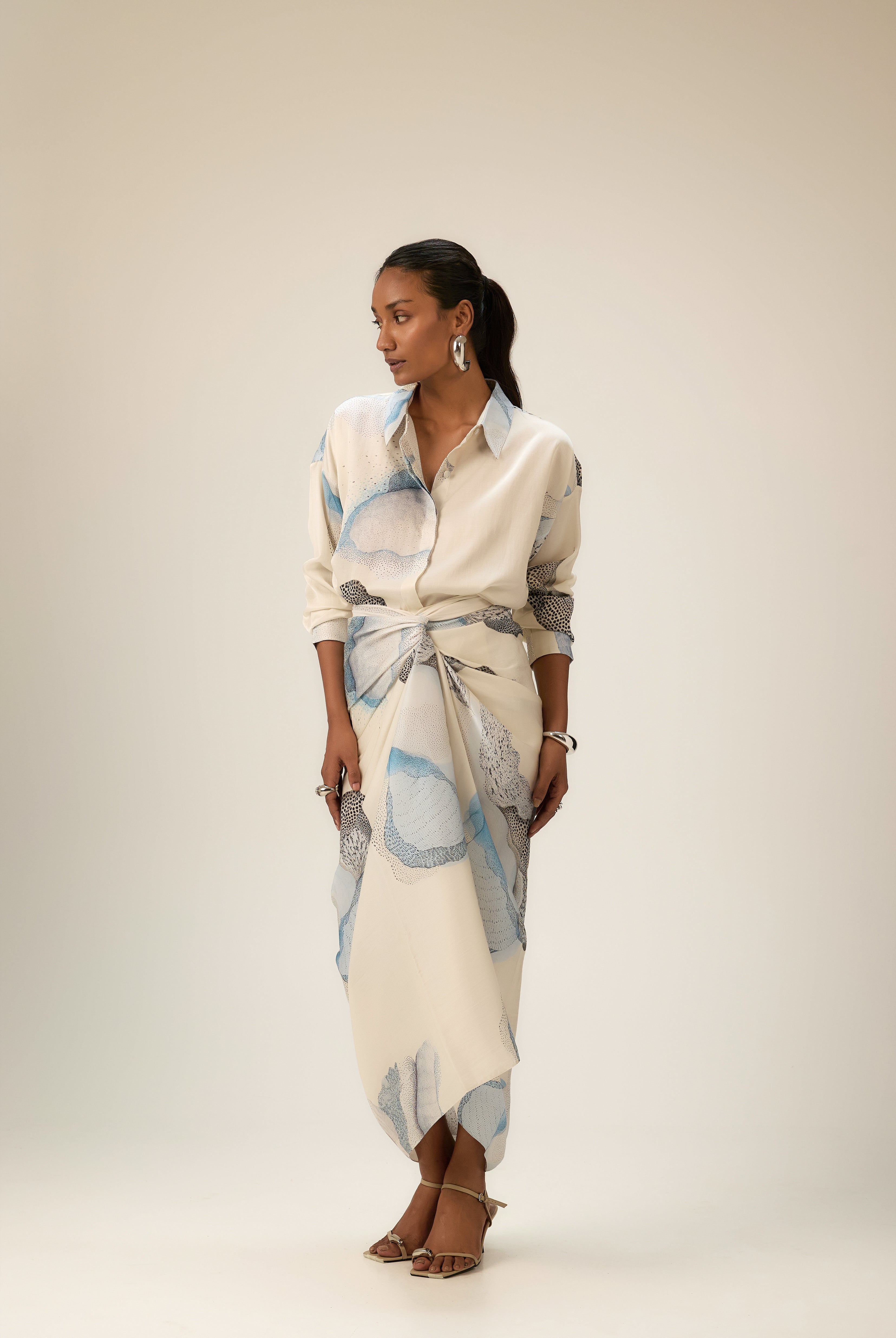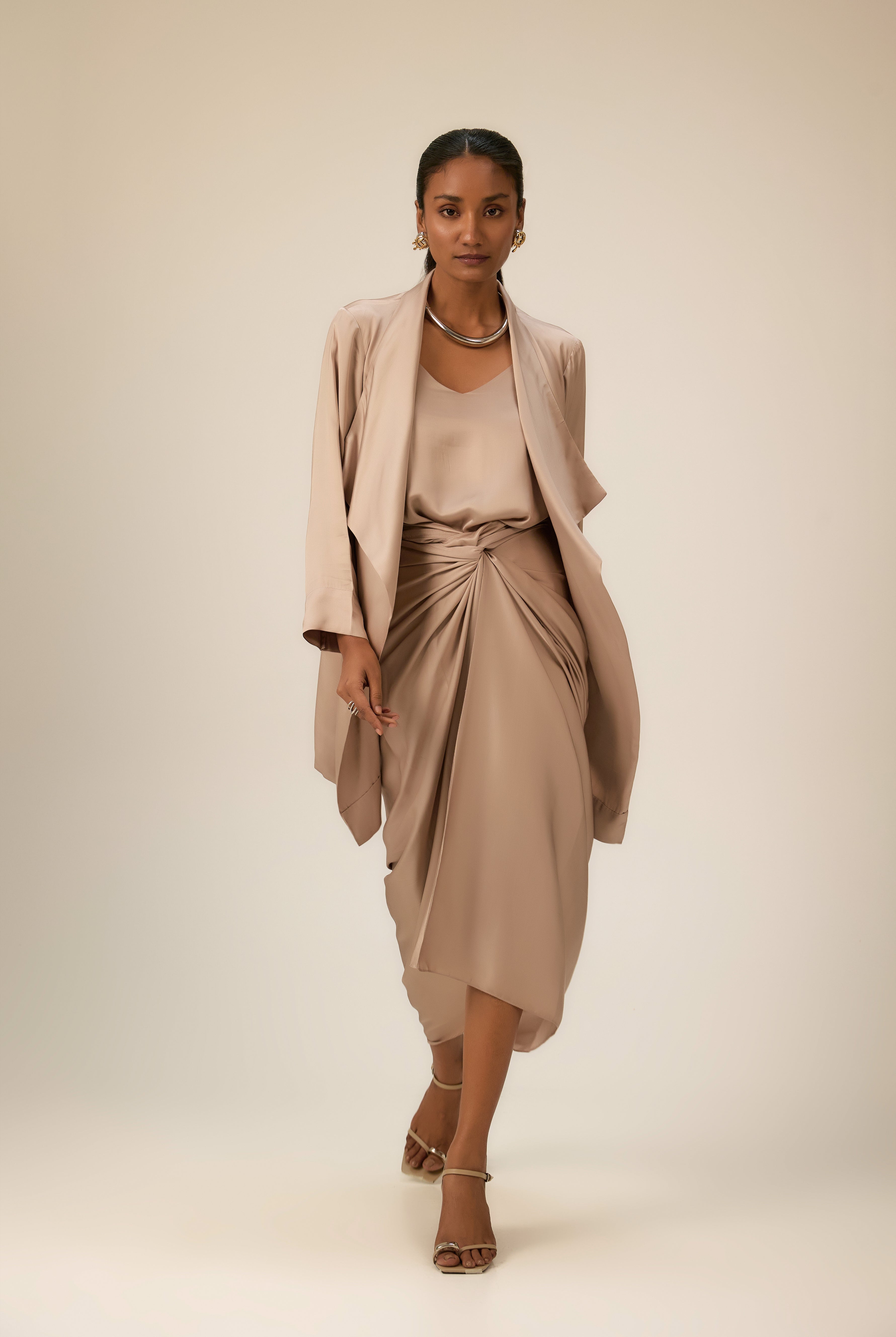 This collection was born from a moment of stillness, watching the ocean transform under the golden hues of the sun. It is a celebration of that transformation. Of movement, of fluidity, of the interplay between strength and serenity. Through textures, colours, and silhouettes, it captures the poetry of water and light, the way they dance, evolve, and tell their own story.