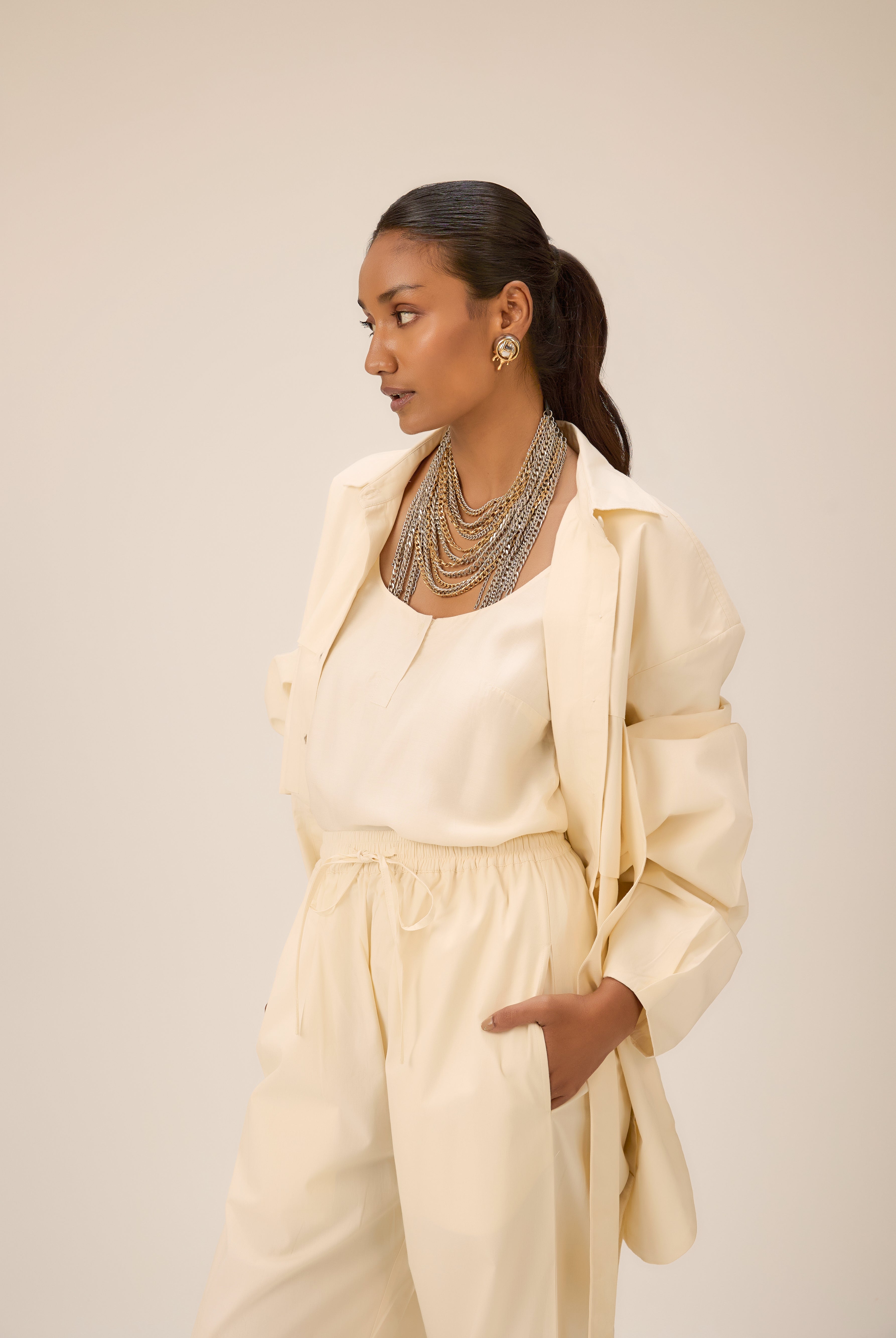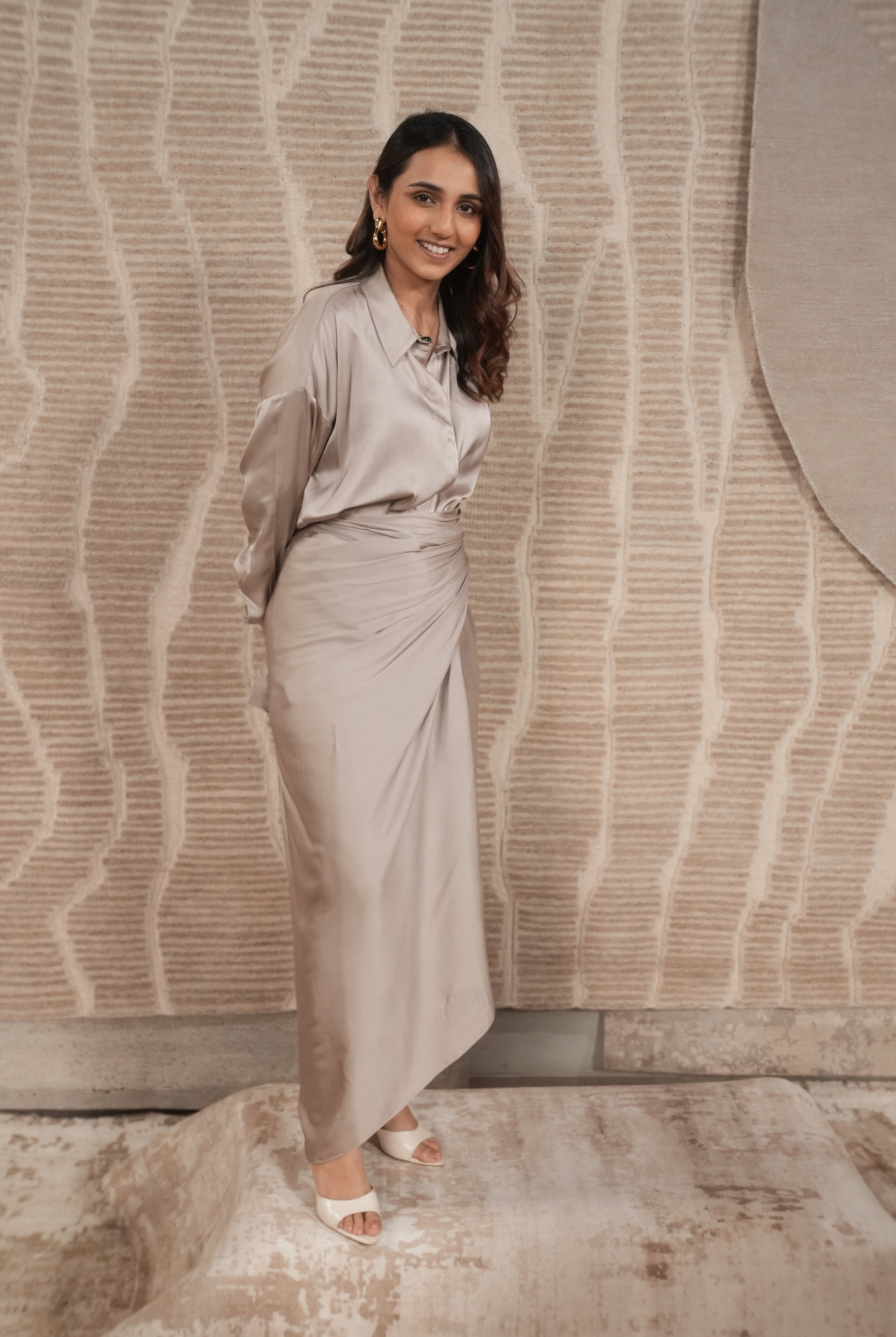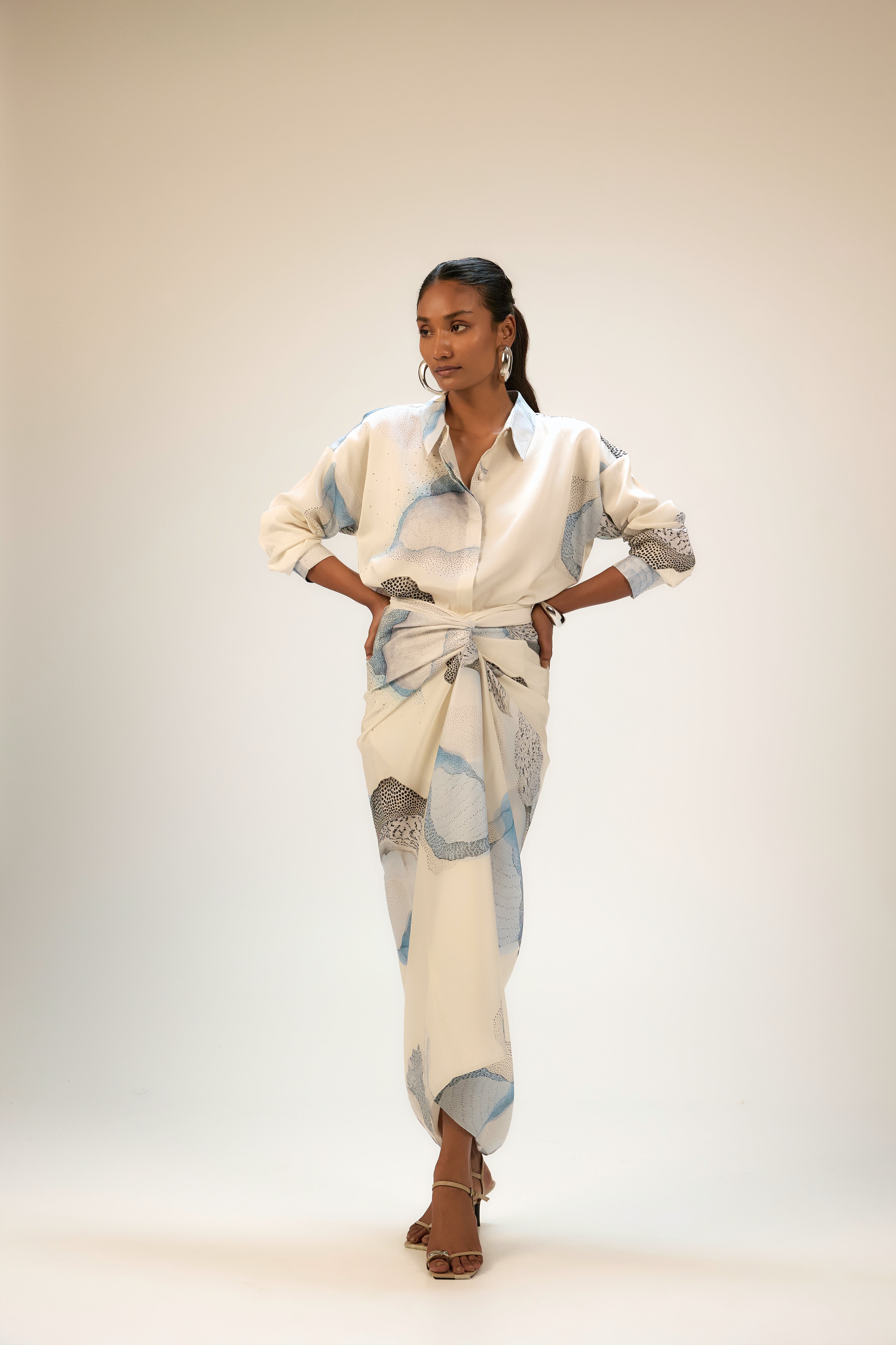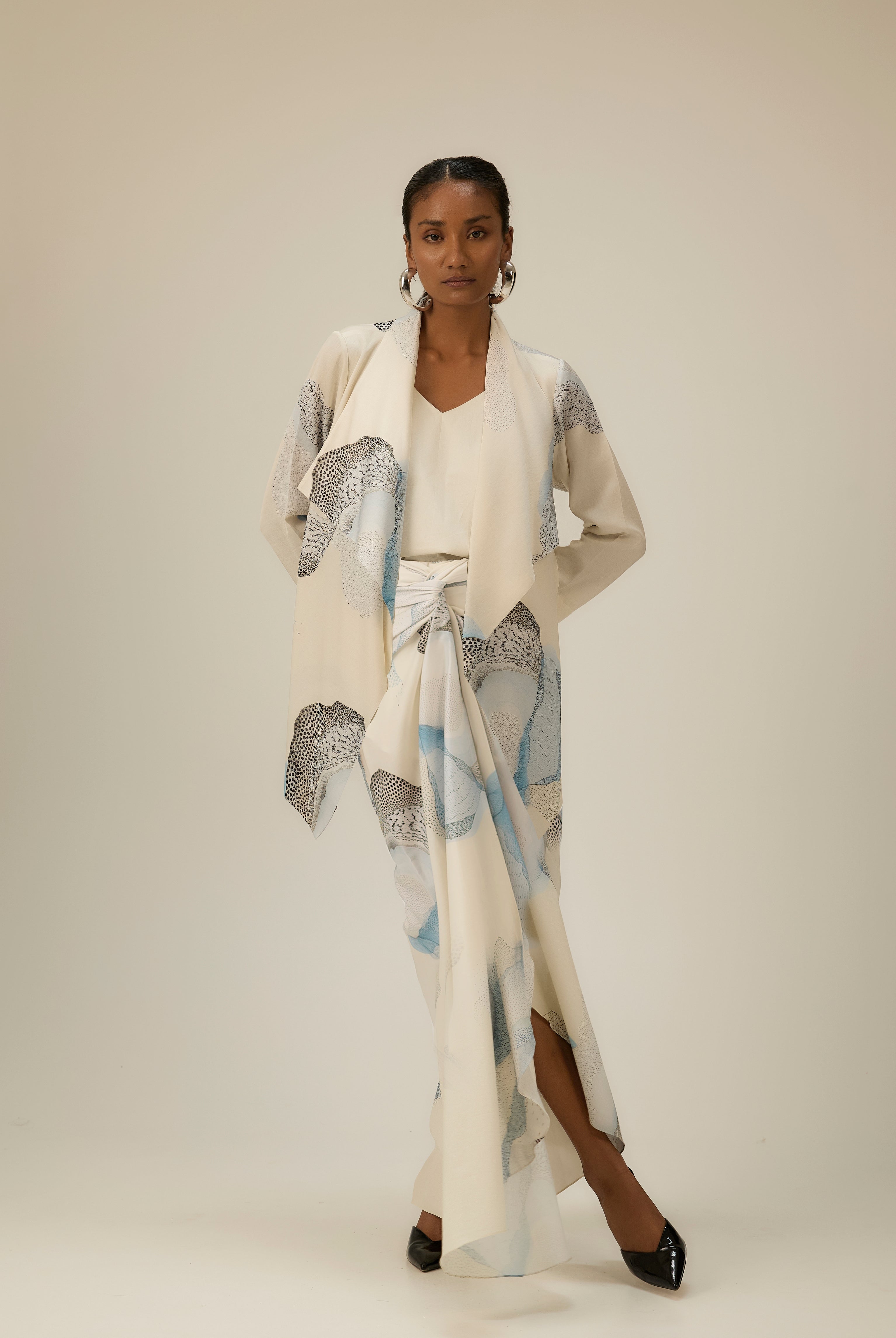 This collection was born from a moment of stillness, watching the ocean transform under the golden hues of the sun. It is a celebration of that transformation. Of movement, of fluidity, of the interplay between strength and serenity. Through textures, colours, and silhouettes, it captures the poetry of water and light, the way they dance, evolve, and tell their own story.