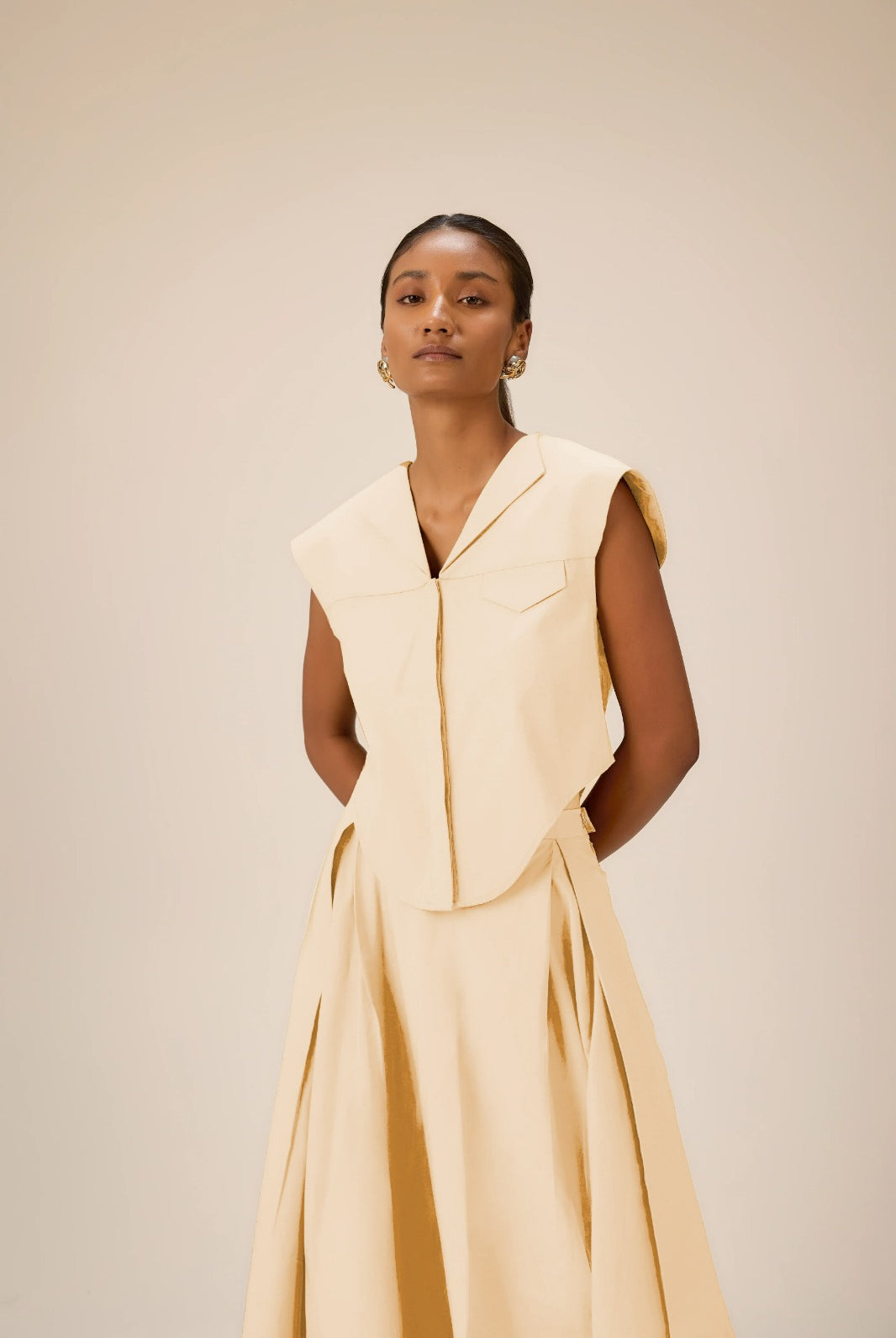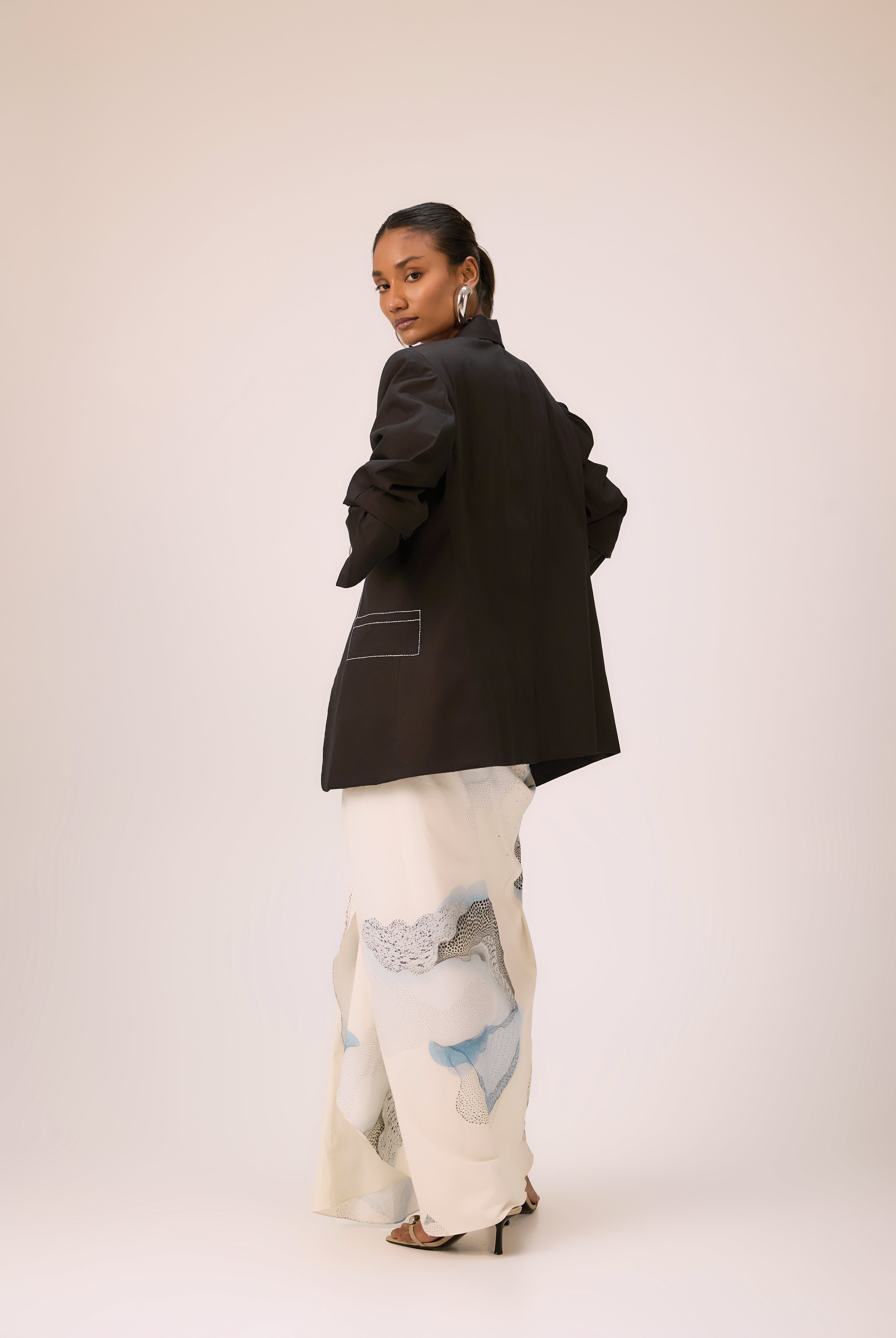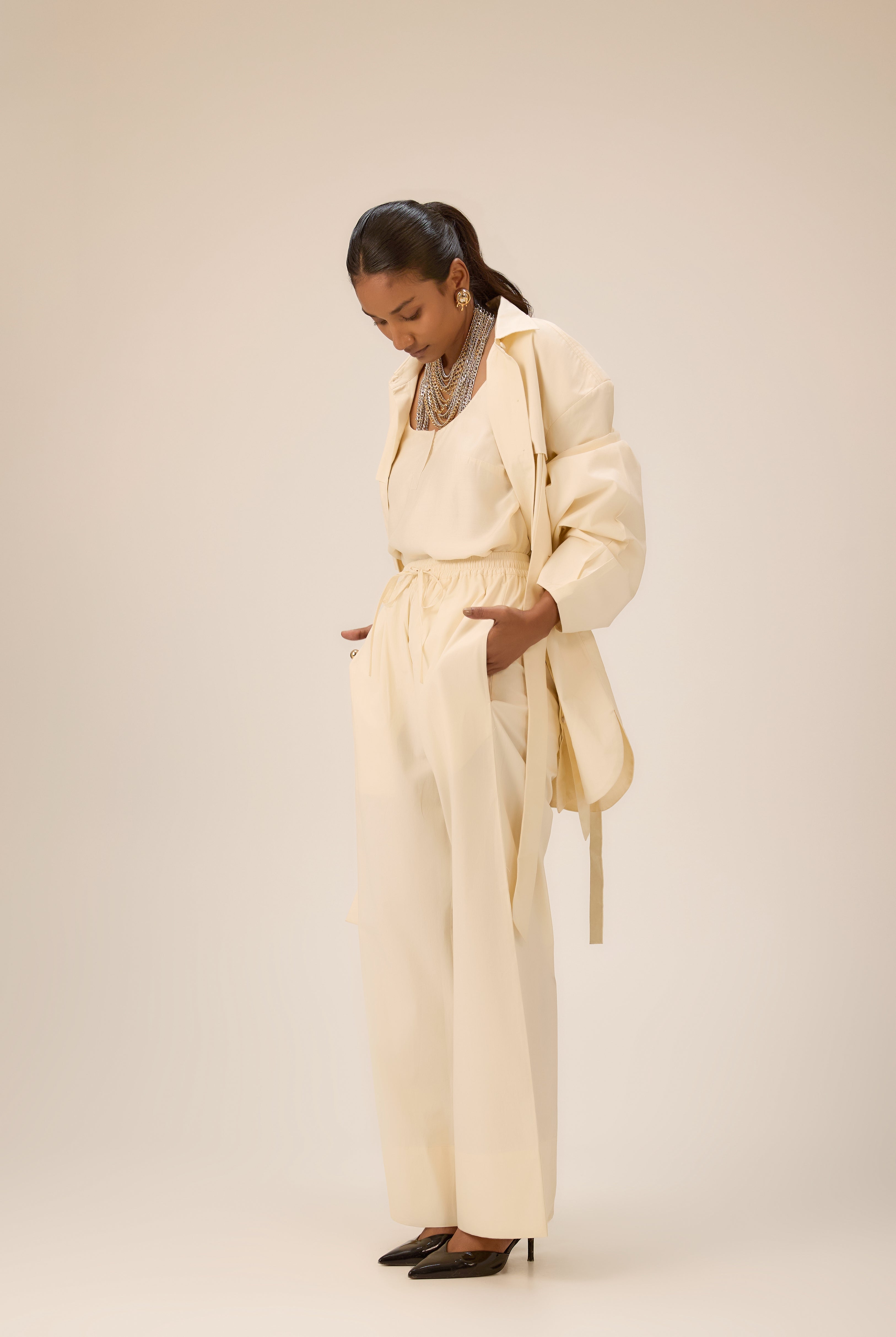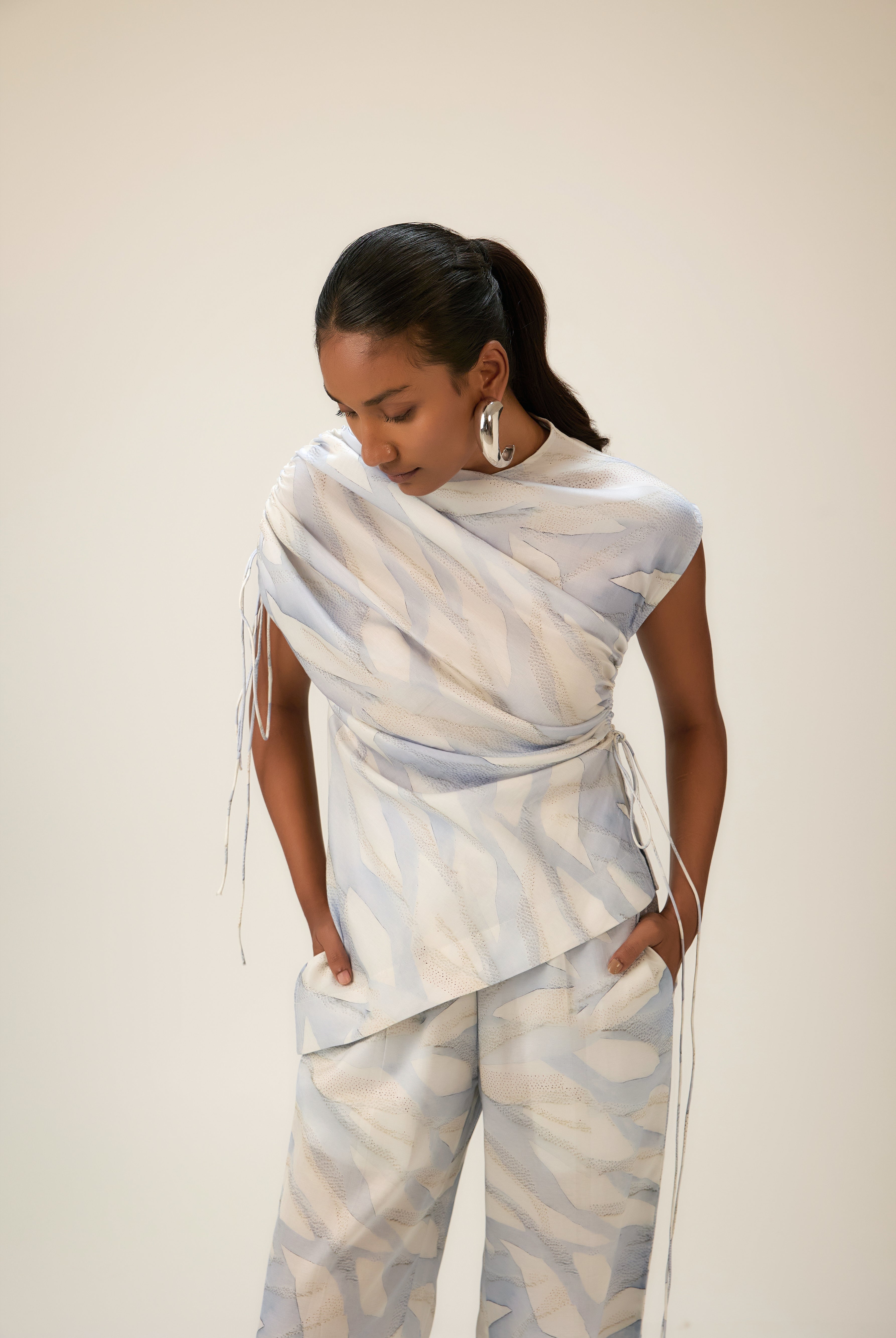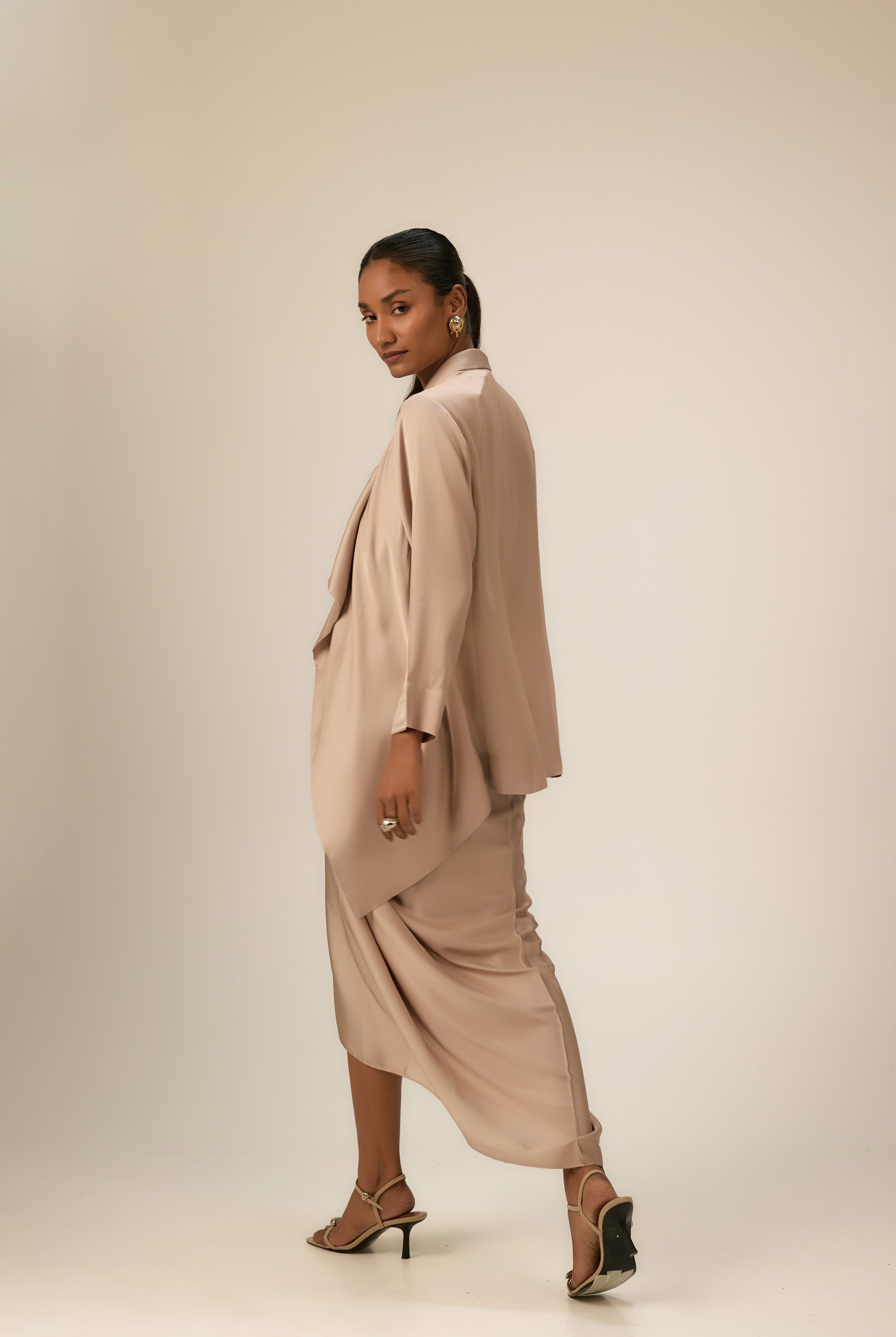 This collection was born from a moment of stillness, watching the ocean transform under the golden hues of the sun. It is a celebration of that transformation. Of movement, of fluidity, of the interplay between strength and serenity. Through textures, colours, and silhouettes, it captures the poetry of water and light, the way they dance, evolve, and tell their own story.