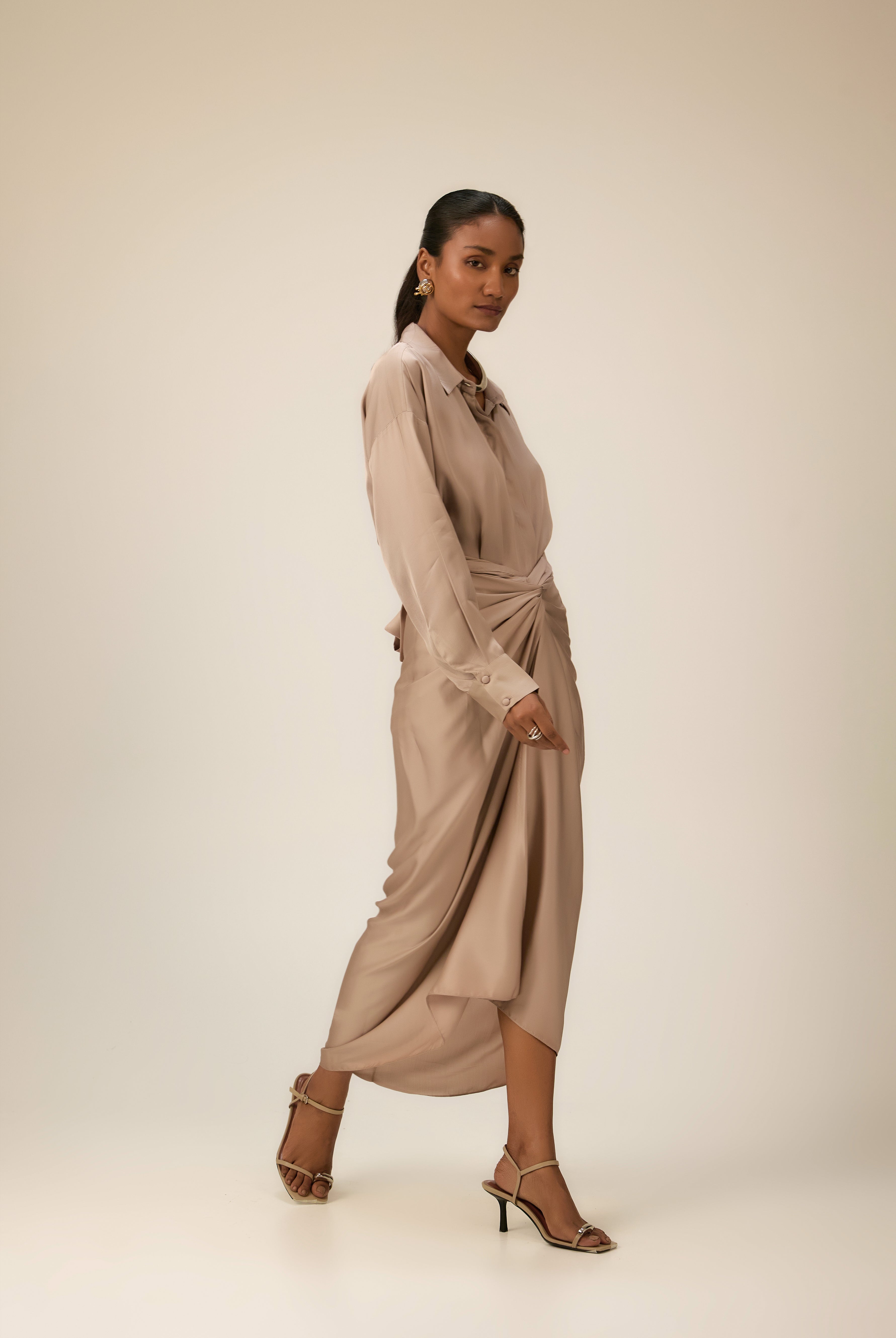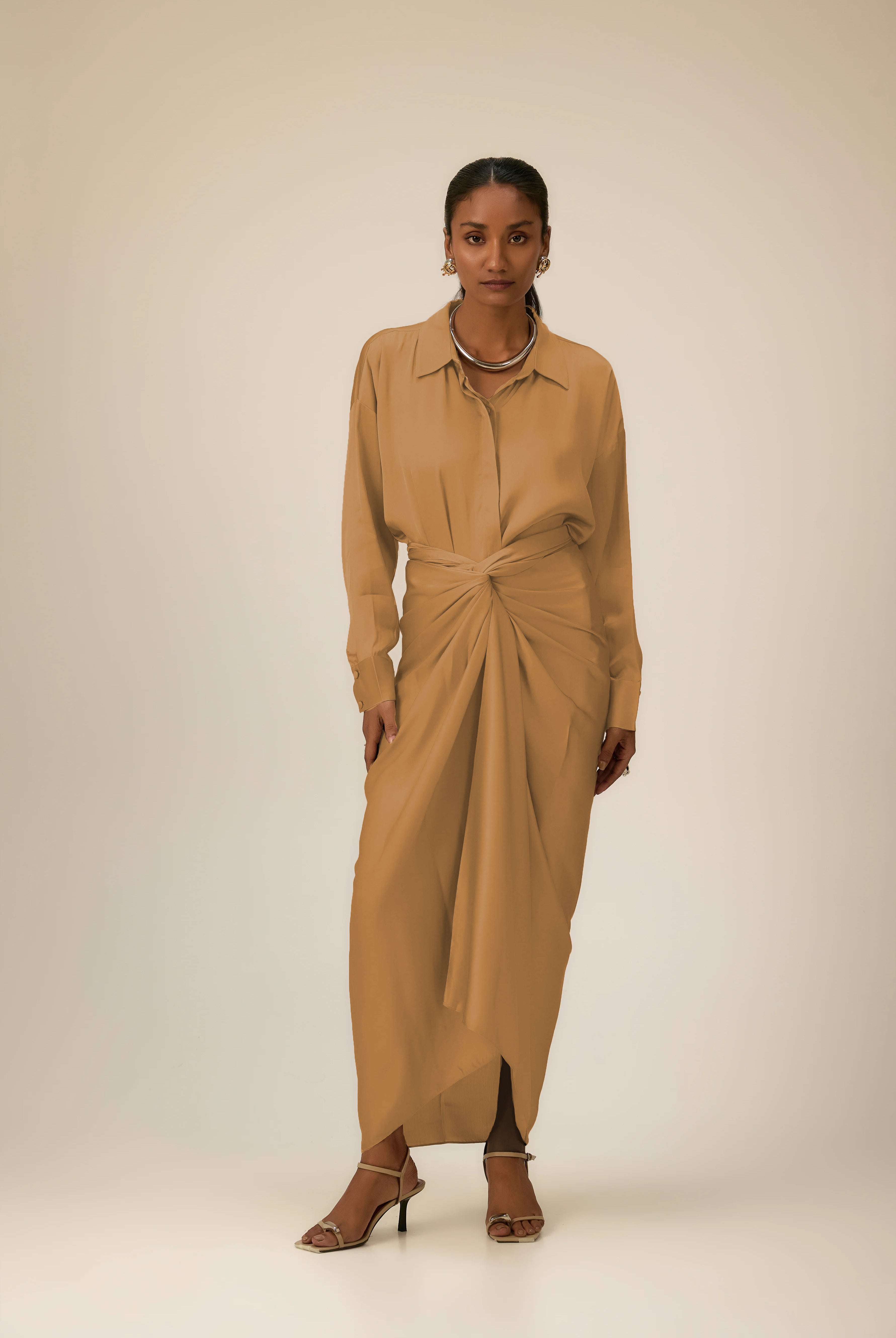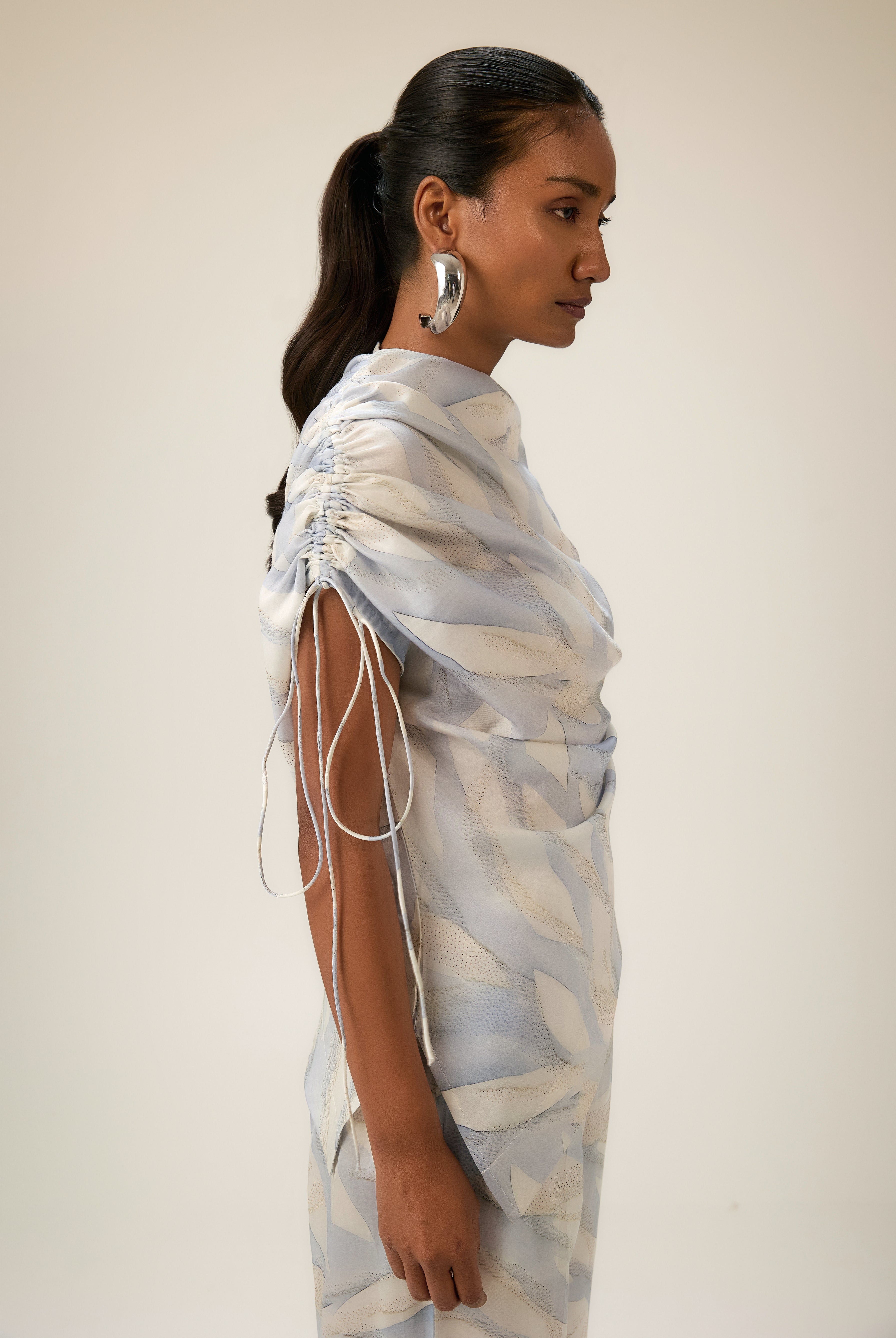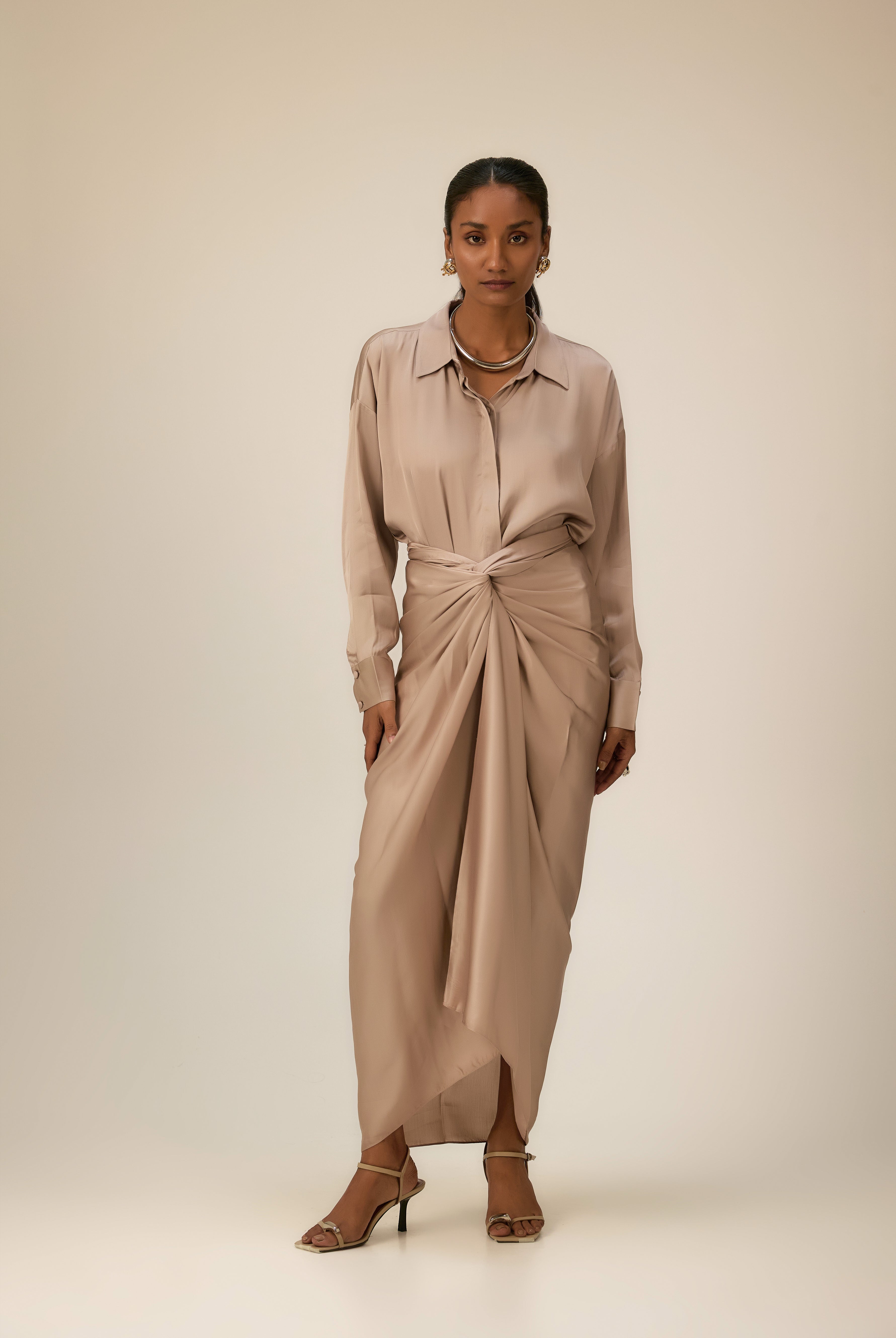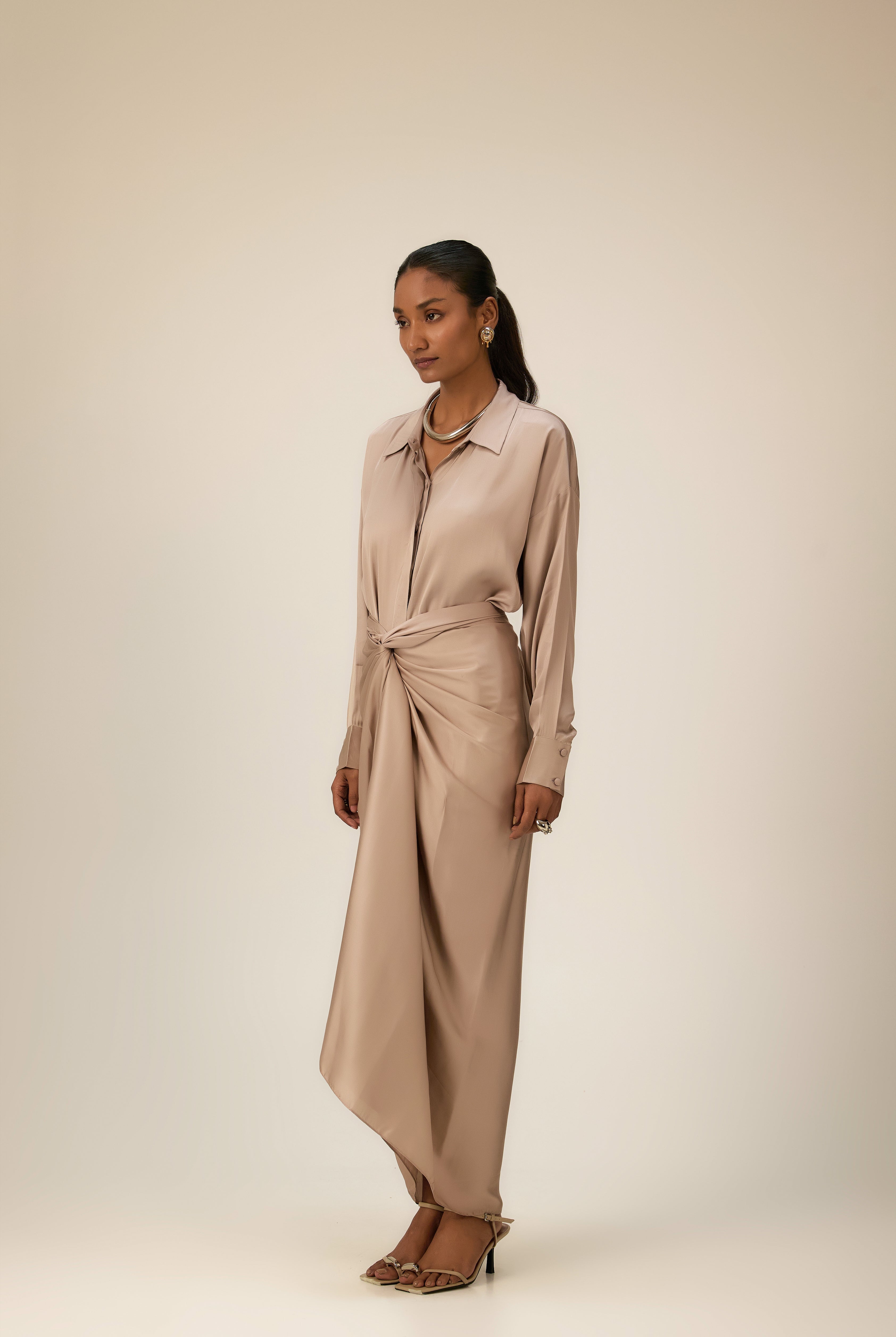 This collection was born from a moment of stillness, watching the ocean transform under the golden hues of the sun. It is a celebration of that transformation. Of movement, of fluidity, of the interplay between strength and serenity. Through textures, colours, and silhouettes, it captures the poetry of water and light, the way they dance, evolve, and tell their own story.