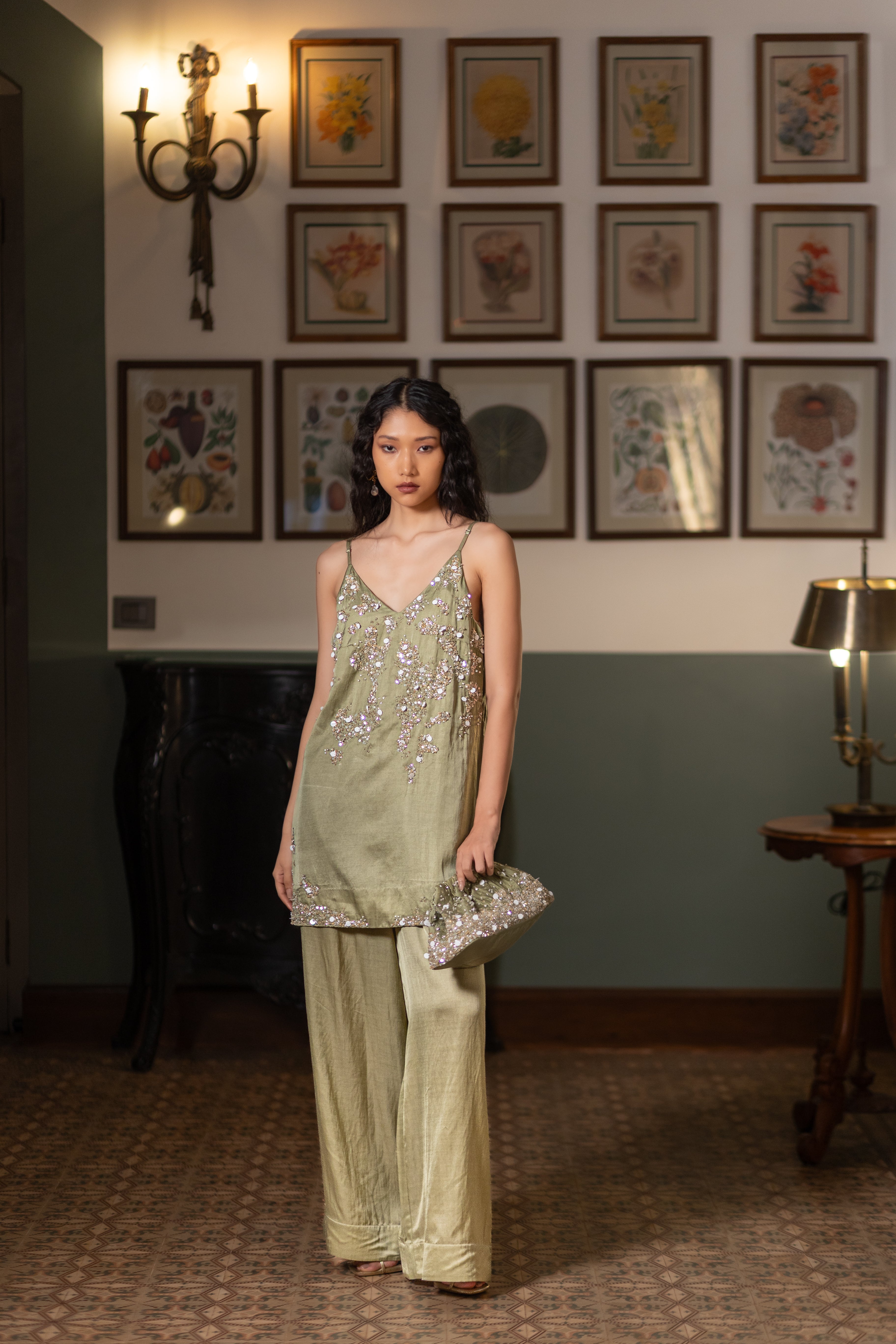 RAINA CO ORD SET EMB SAGE GREEN