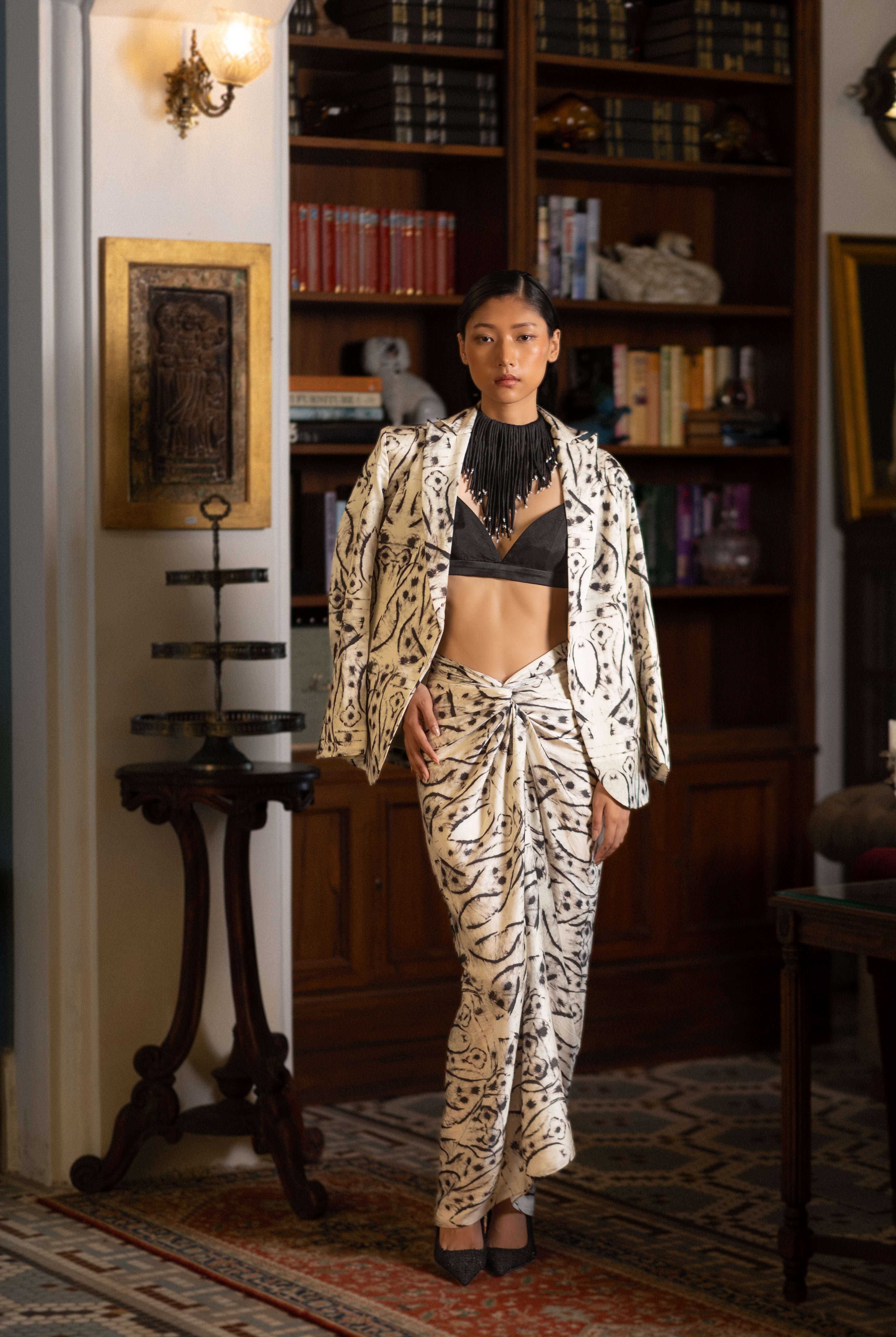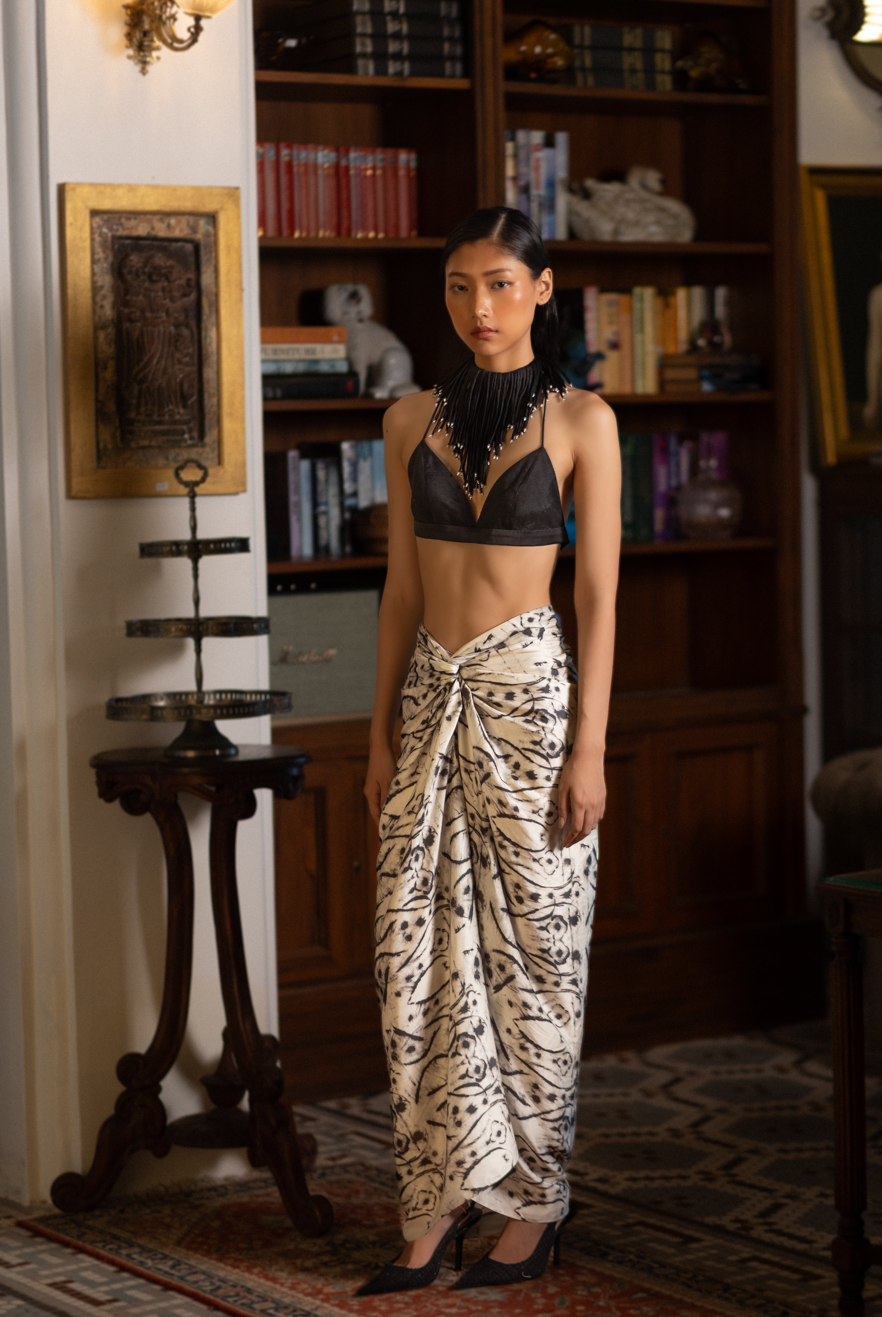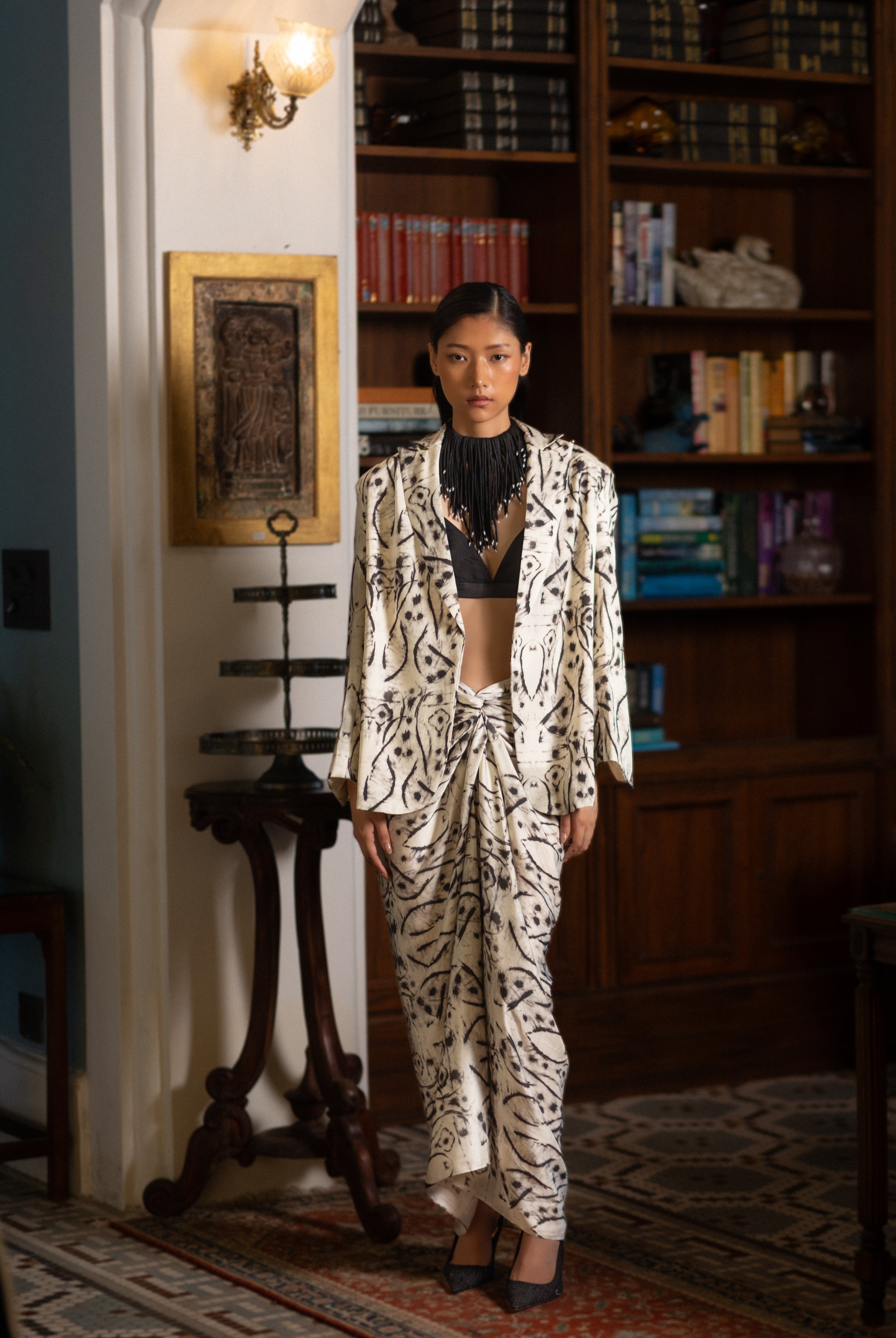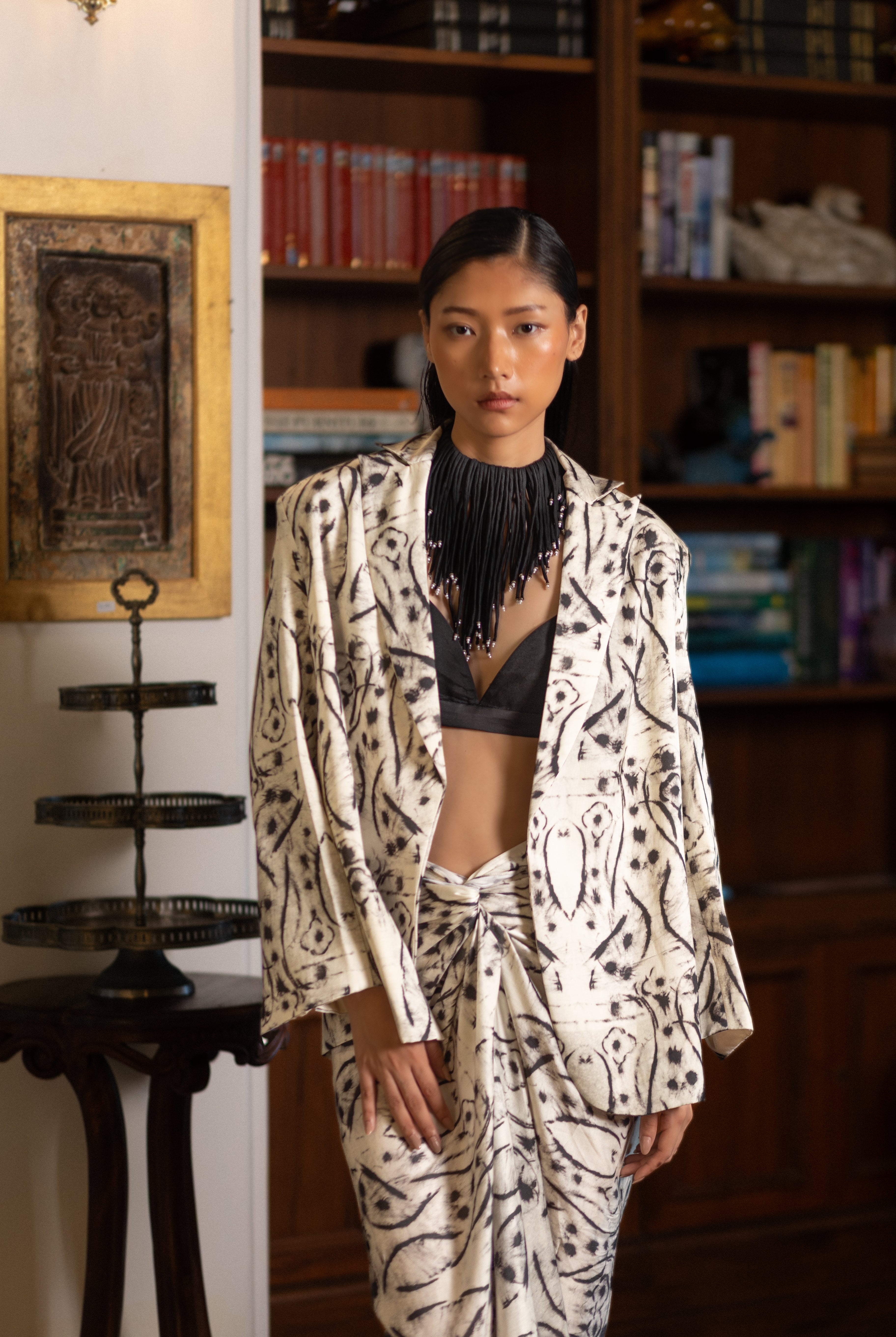 Luma is a collection shaped by contrast , where light meets shadow, and structure flows into softness. Rooted in a black-and-white palette, it explores transformation through tailored silhouettes, fluid drapes, and unexpected breaks in rhythm. Each piece embraces the tension of opposites, reflecting the quiet beauty of becoming.