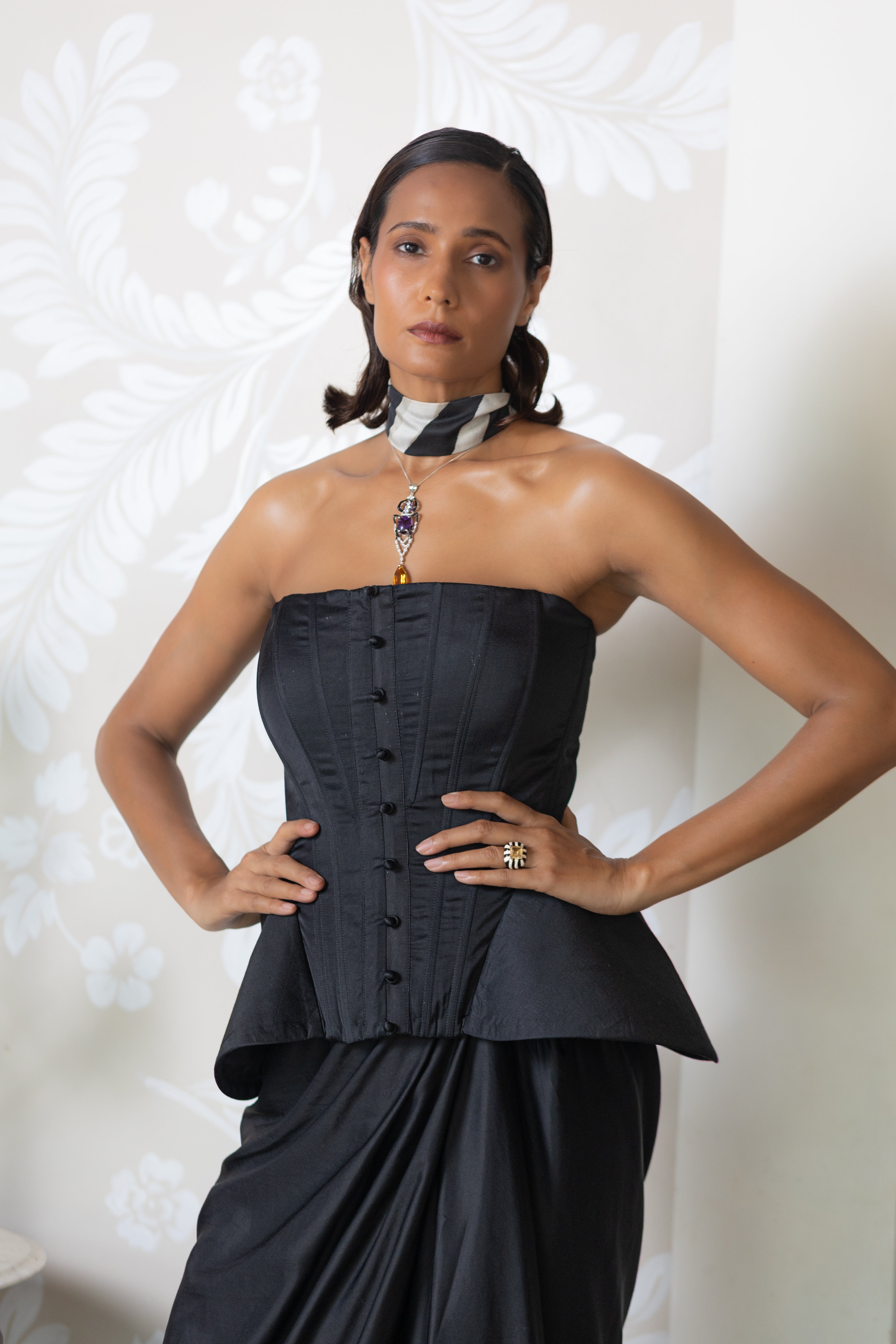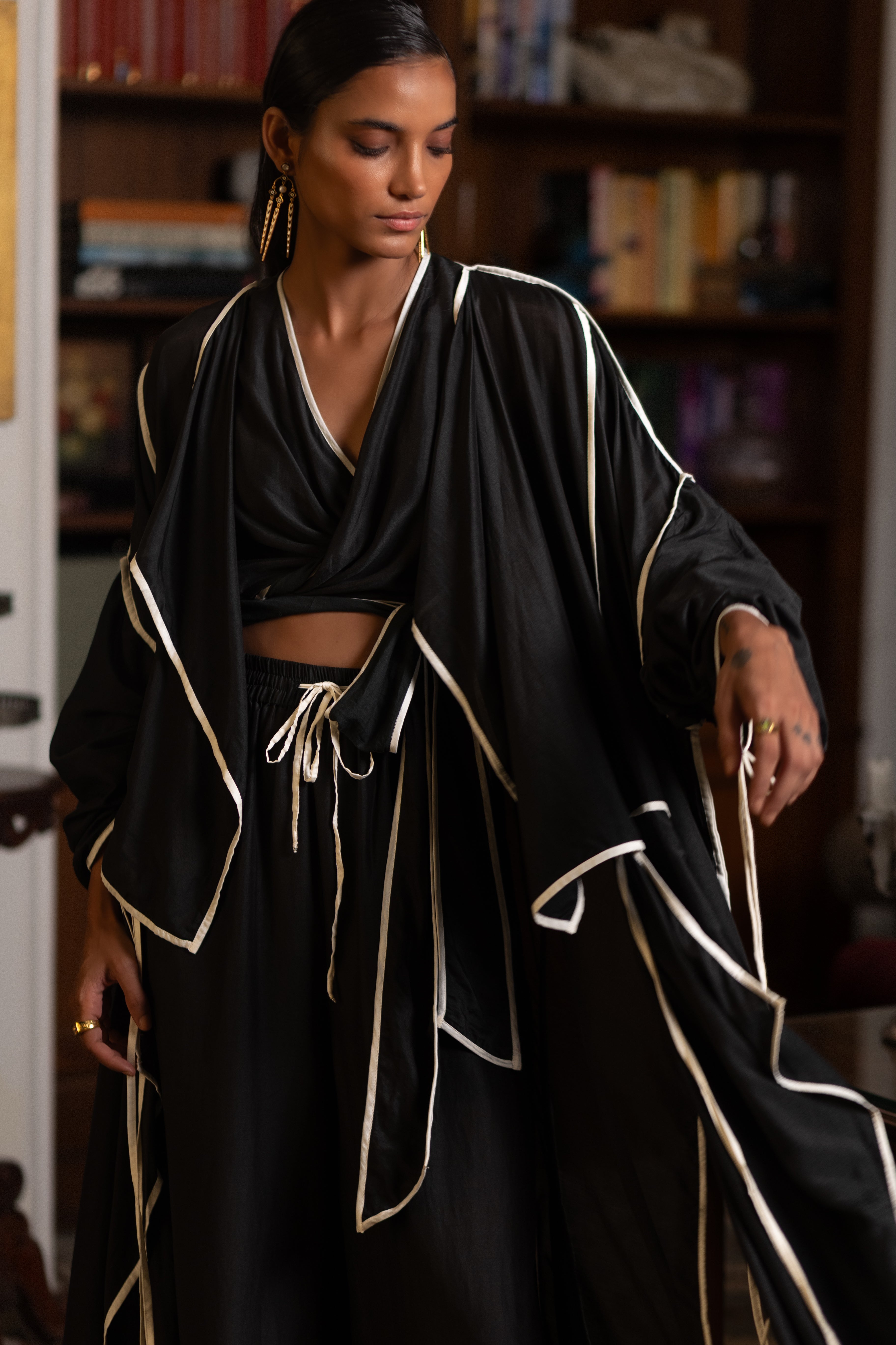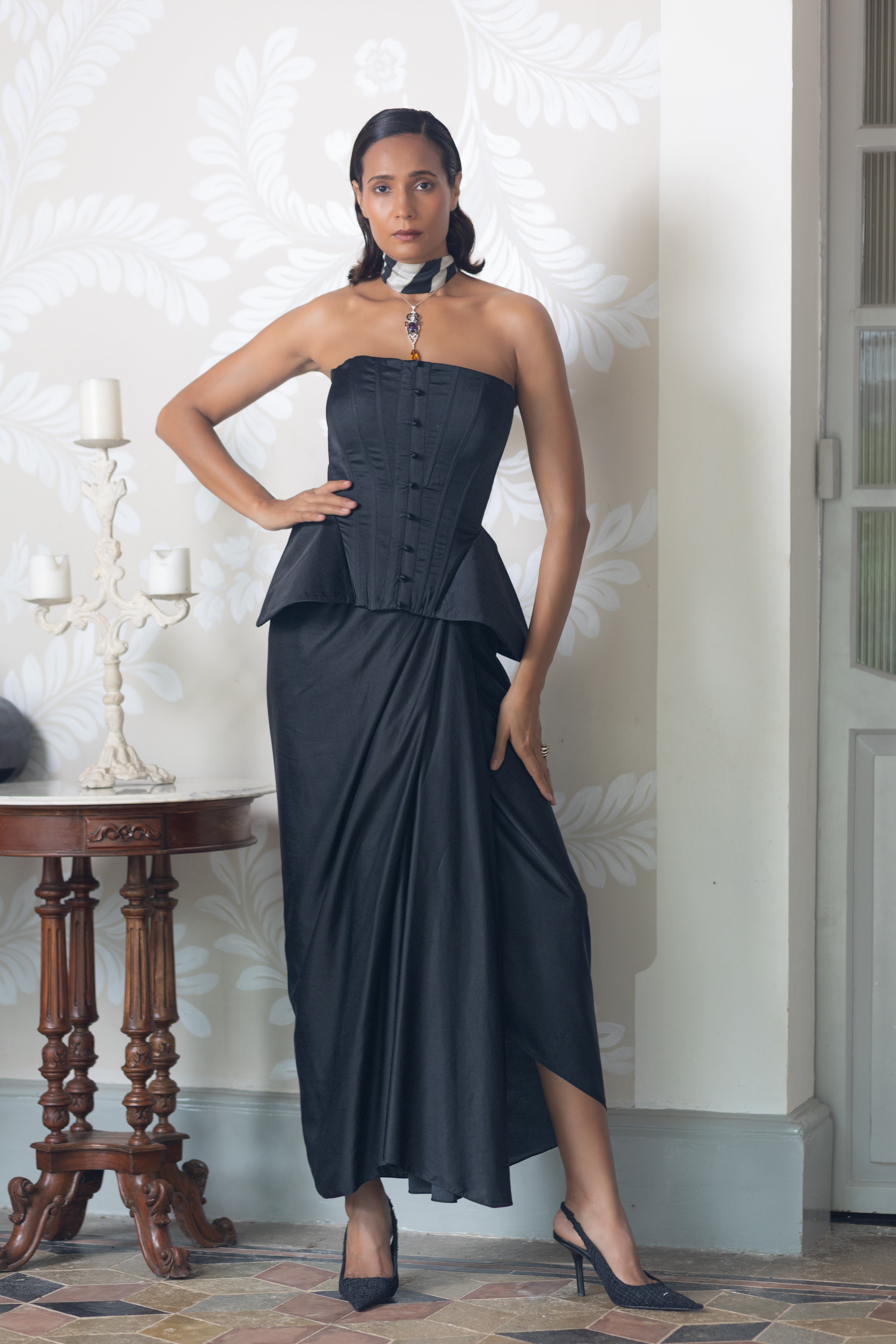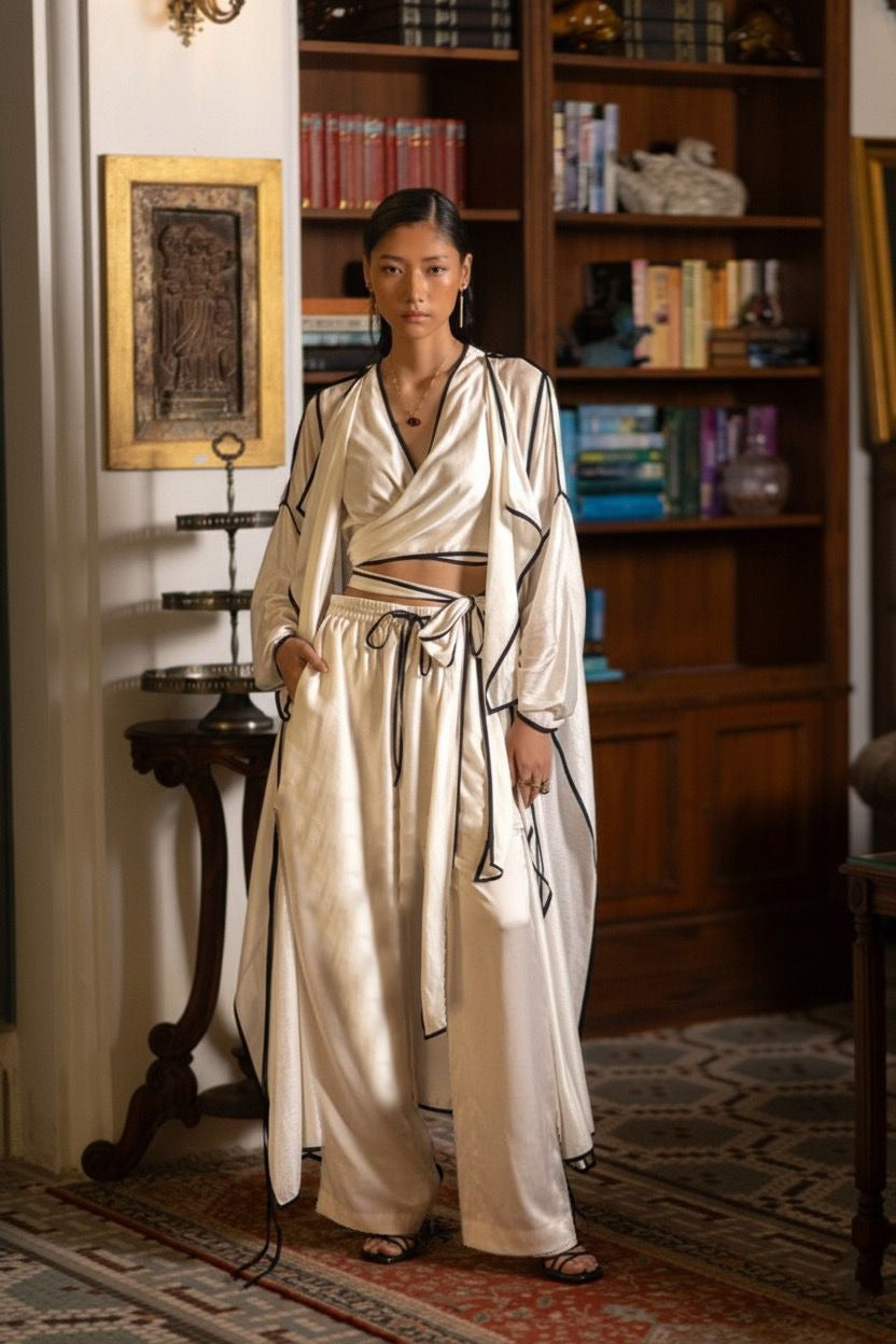 Luma is a collection shaped by contrast , where light meets shadow, and structure flows into softness. Rooted in a black-and-white palette, it explores transformation through tailored silhouettes, fluid drapes, and unexpected breaks in rhythm. Each piece embraces the tension of opposites, reflecting the quiet beauty of becoming.