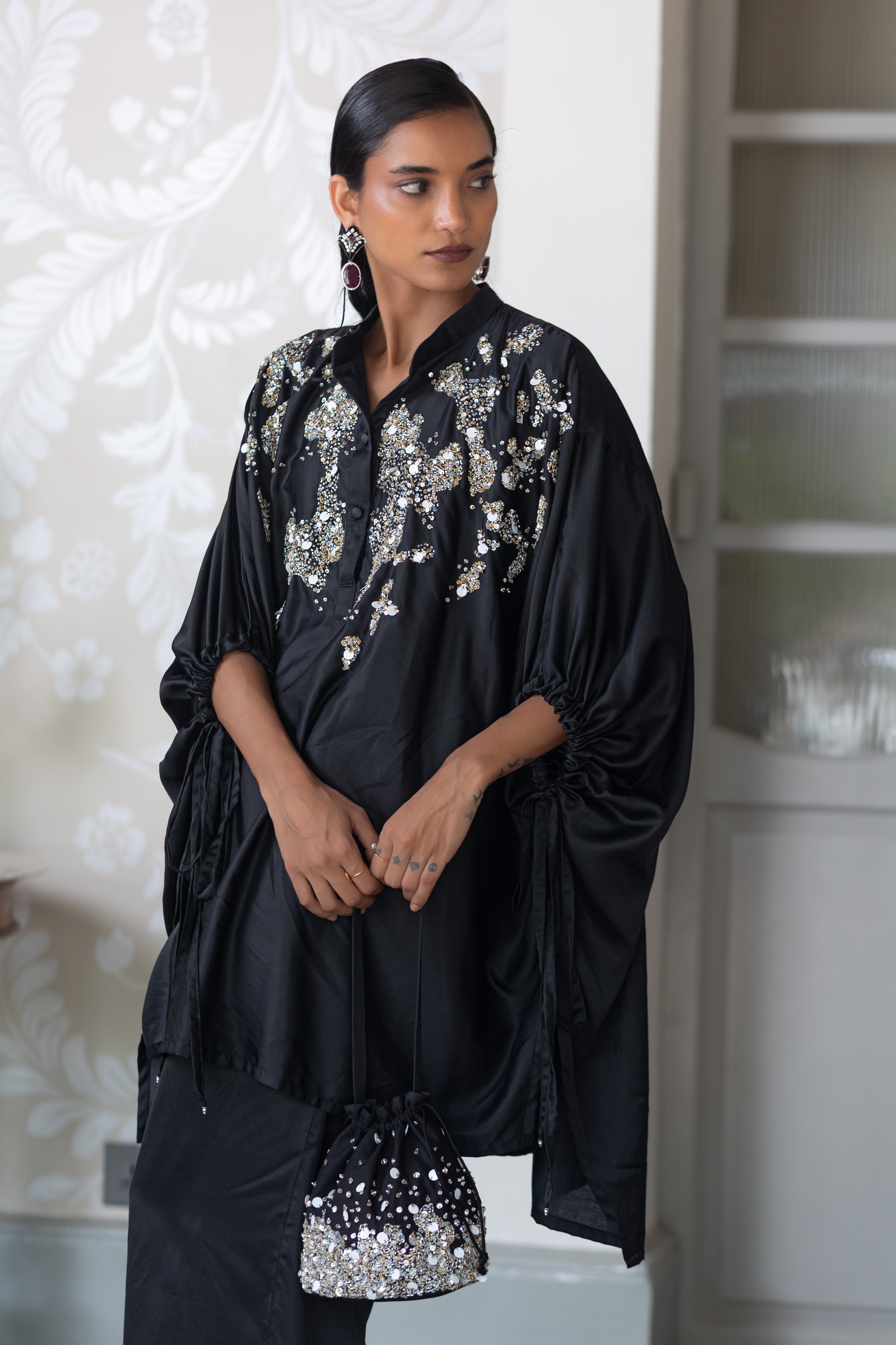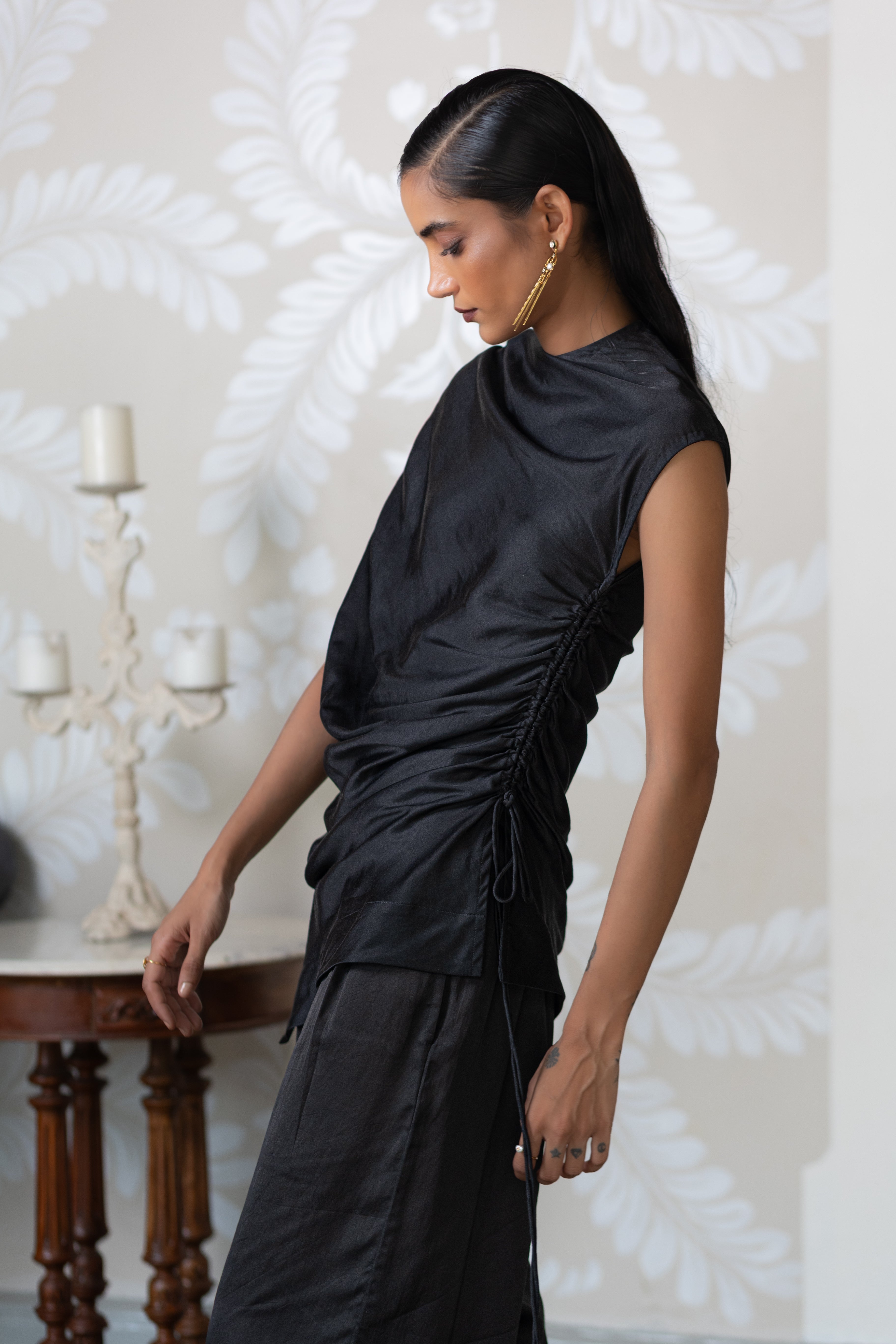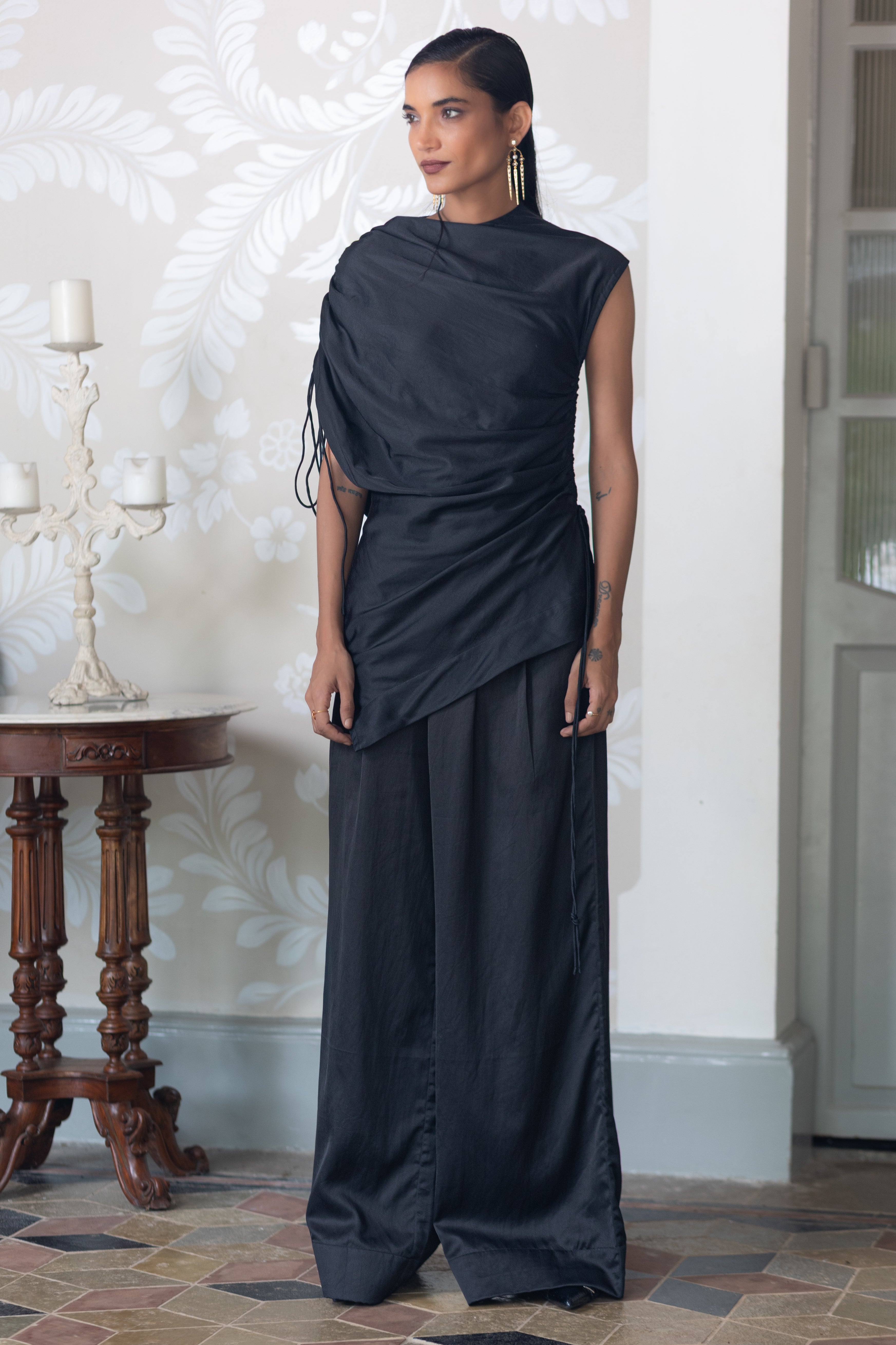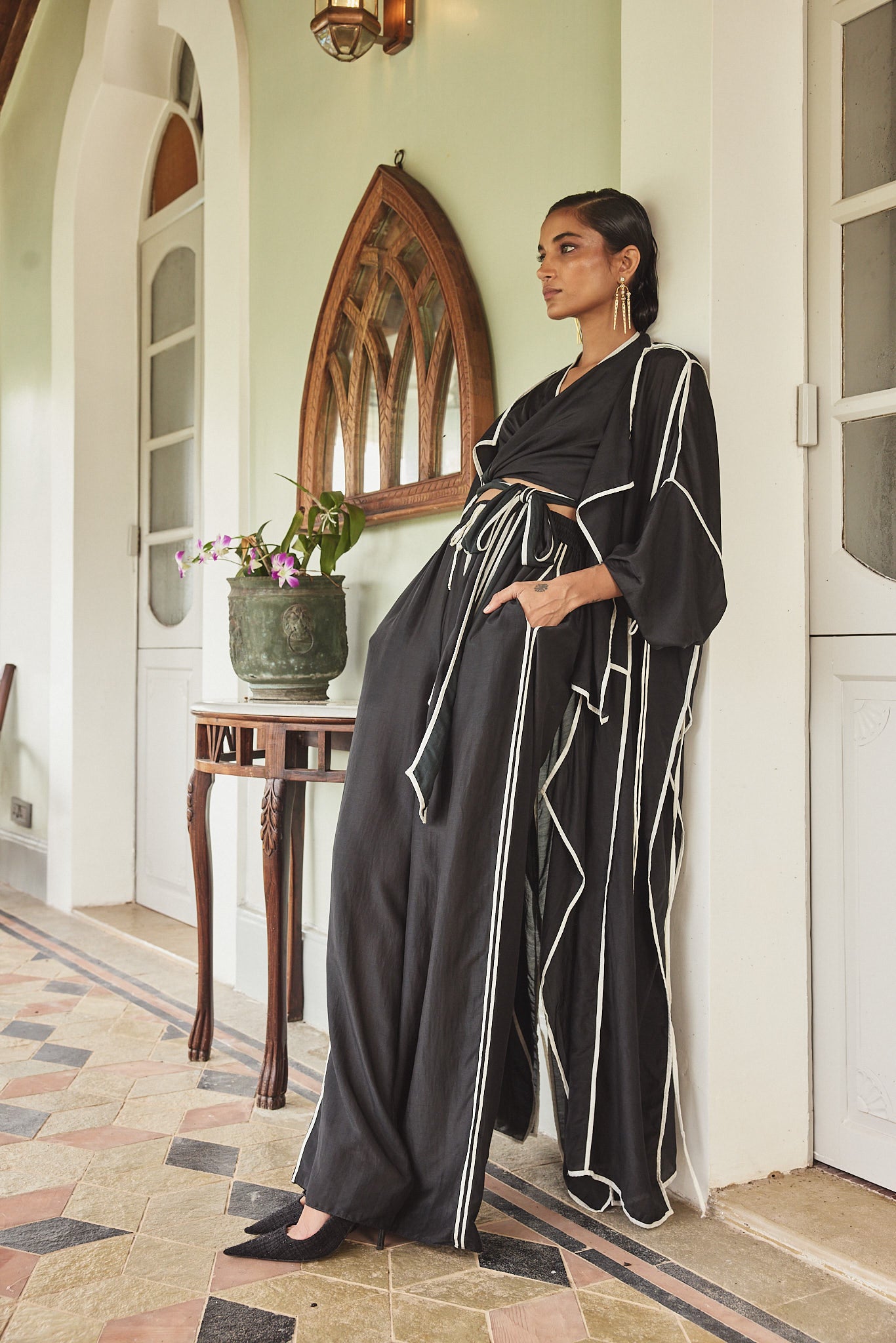 Luma is a collection shaped by contrast , where light meets shadow, and structure flows into softness. Rooted in a black-and-white palette, it explores transformation through tailored silhouettes, fluid drapes, and unexpected breaks in rhythm. Each piece embraces the tension of opposites, reflecting the quiet beauty of becoming.