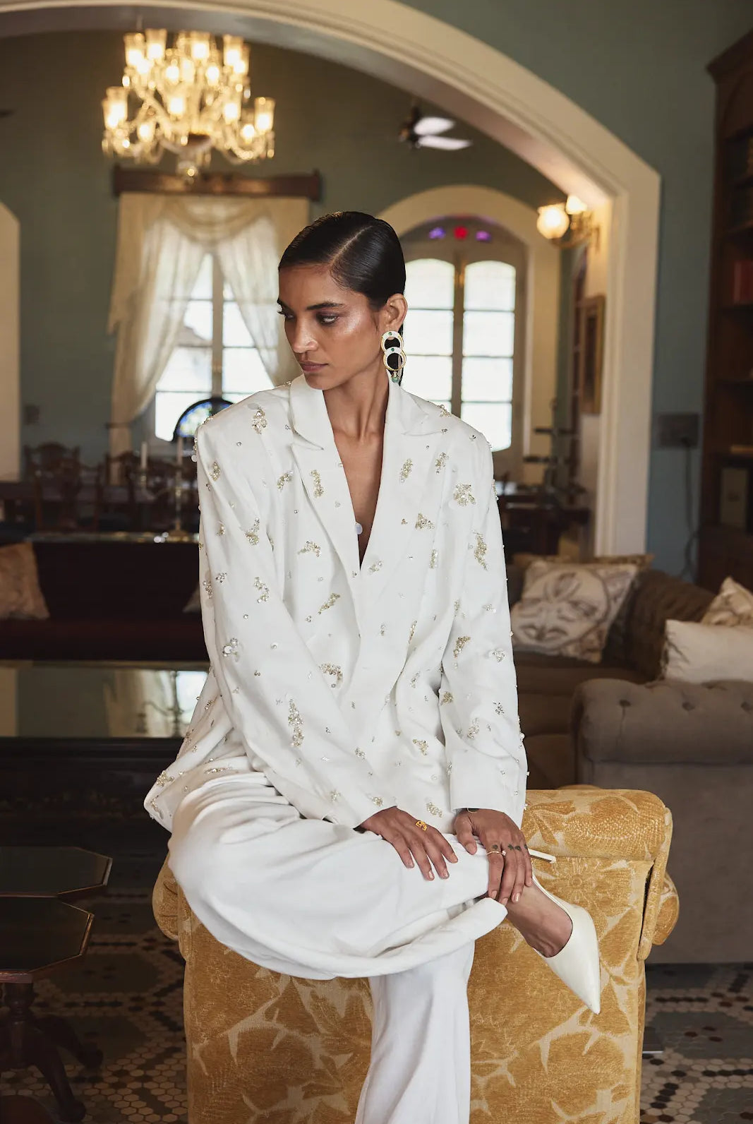 Luma is a collection shaped by contrast , where light meets shadow, and structure flows into softness. Rooted in a black-and-white palette, it explores transformation through tailored silhouettes, fluid drapes, and unexpected breaks in rhythm. Each piece embraces the tension of opposites, reflecting the quiet beauty of becoming.