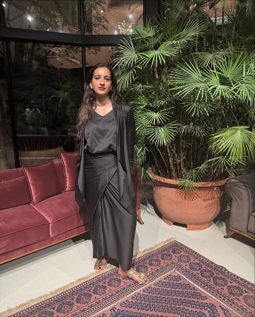 Elevate your style with Nouria's must-have Tieup Dress The bottom sarong skirt can be tied up in multiple ways that looks stunning on all versatile body silhouettes paired with Eka Short waterfall Jacket over it to complete the look. This jacket serves as the perfect complement to its matching dress, creating an ensemble that's ideal for a perfect special occasion.