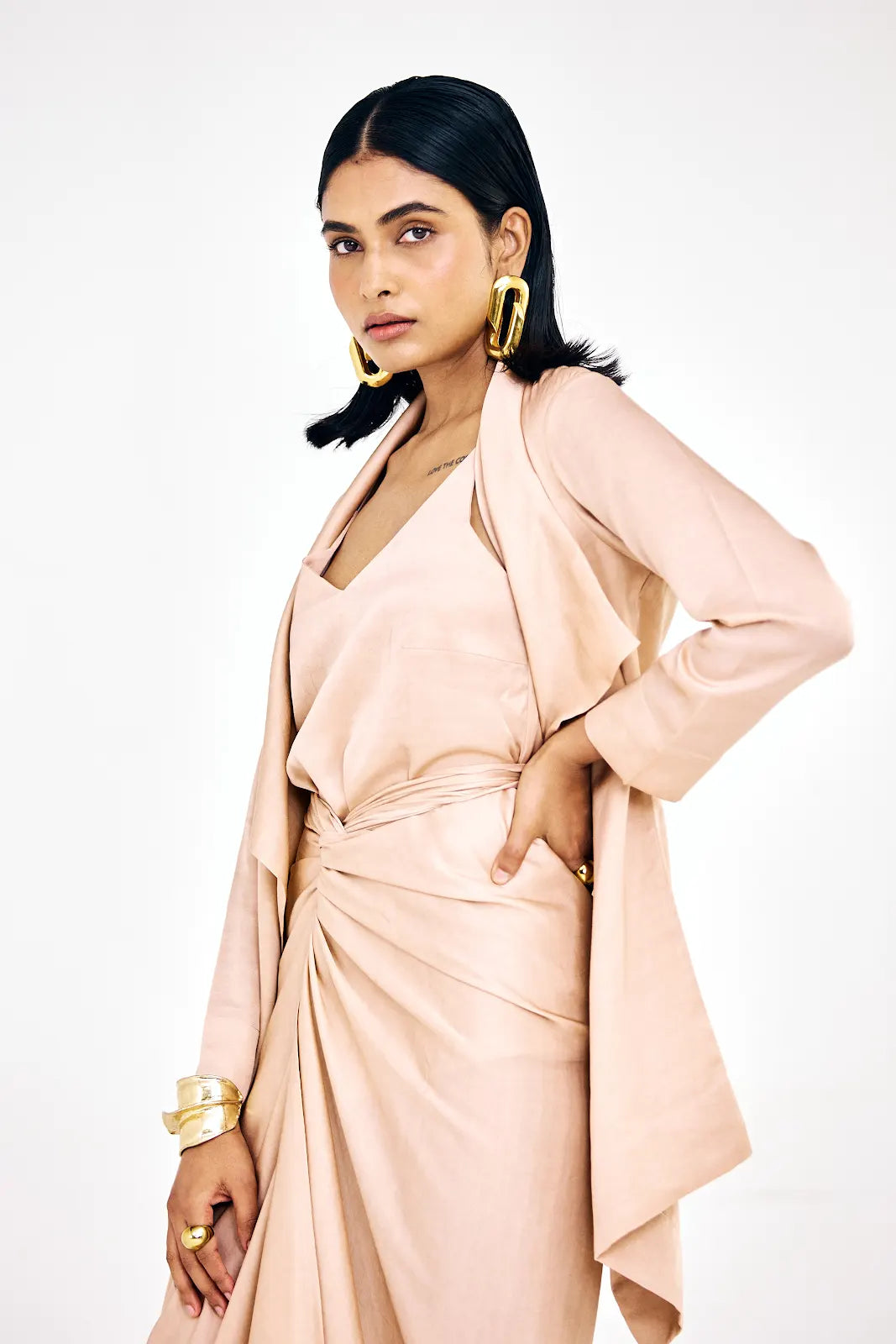 Elevate your style with Nouria's Eka Short waterfall Jacket. This jacket serves as the perfect complement to its matching dress, creating an ensemble that's ideal for a perfect special occasion.