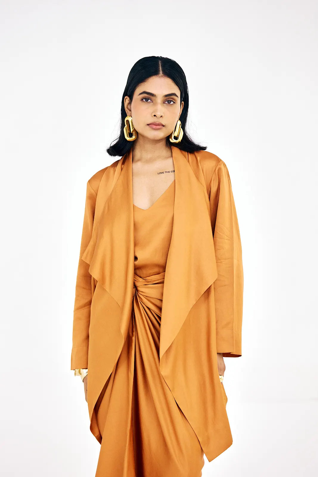 Elevate your style with Nouria's Eka Short waterfall Jacket. This jacket serves as the perfect complement to its matching dress, creating an ensemble that's ideal for a perfect special occasion.