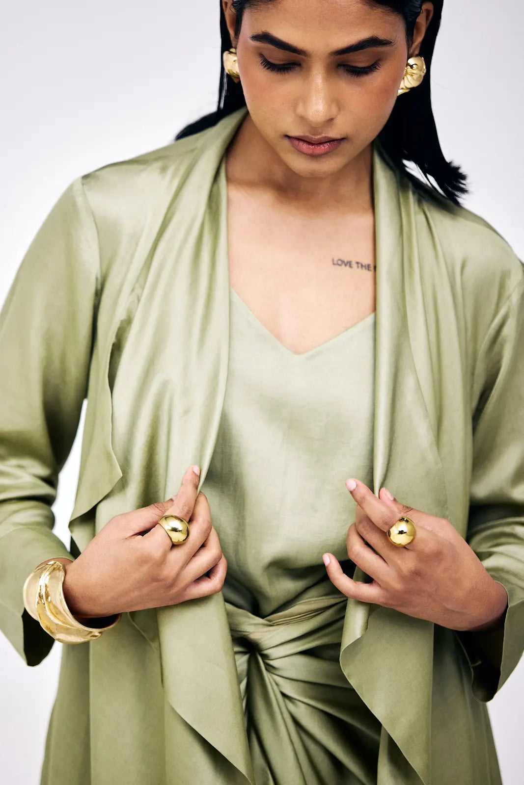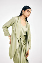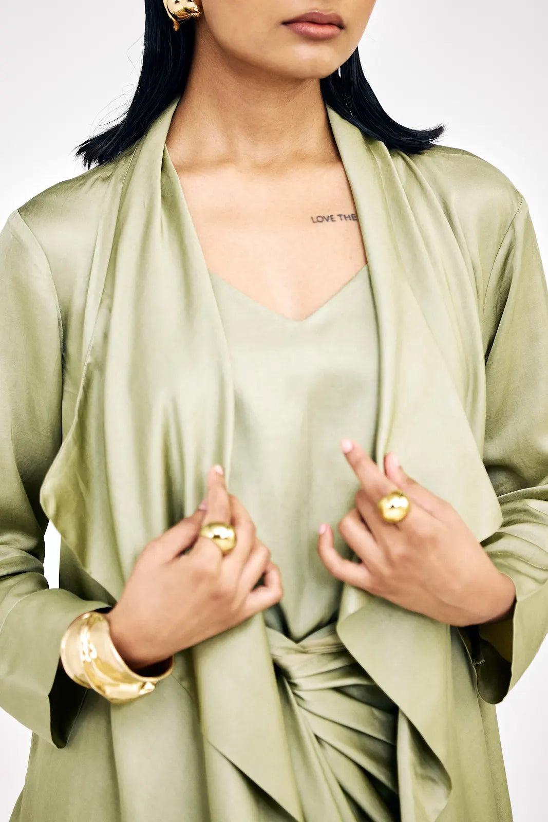 Elevate your style with Nouria's Eka Short waterfall Jacket. This jacket serves as the perfect complement to its matching dress, creating an ensemble that's ideal for a perfect special occasion.