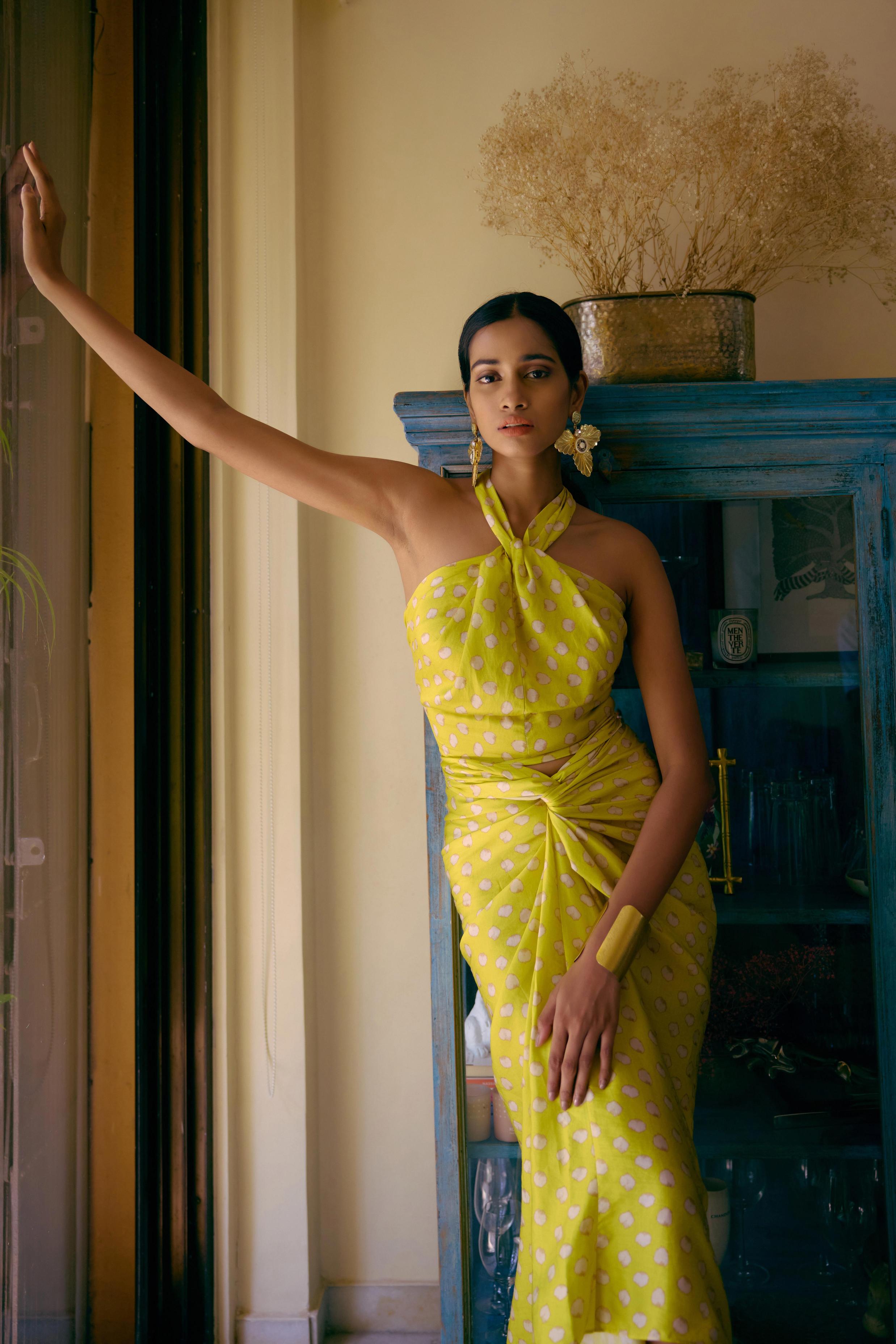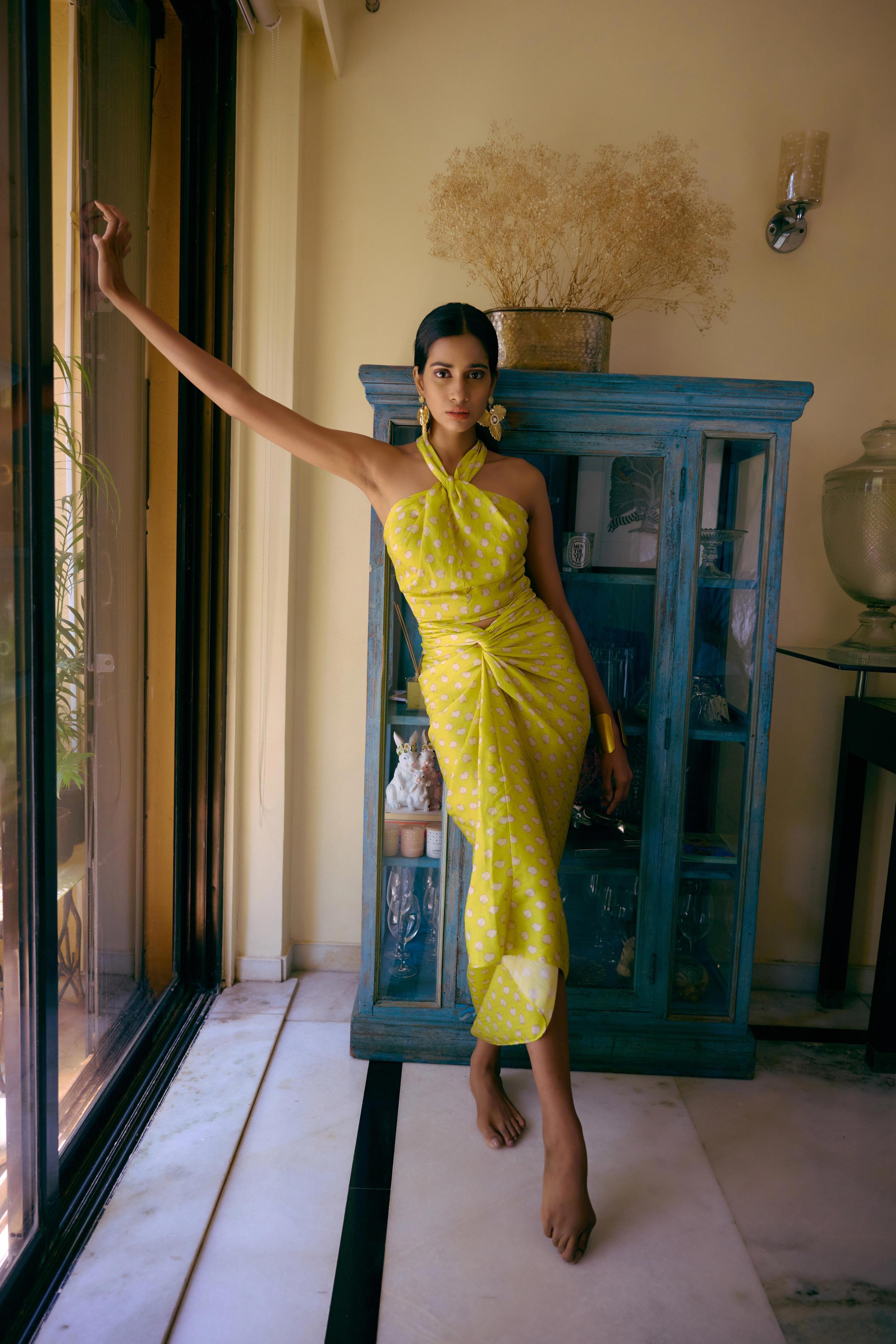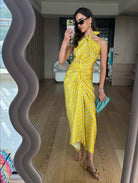 Step into summer with our elegant halter Top, the ultimate staple for sun-kissed days and breezy evenings. This timeless piece combines effortless style with chic sophistication, featuring a flattering halter neckline that highlights your shoulders and a flowing silhouette that drapes beautifully over your figure. Crafted from lightweight, breathable fabric, it ensures you stay cool and comfortable even in the hottest weather. Whether you're strolling along the beach, attending a garden party, or enjoying a casual brunch with friends, this dress is your go-to for an effortlessly stylish look. Embrace the season's warmth and radiate pure summer vibes in this essential wardrobe must-have. Team up with Tina skirt which can be dropped in multiple way.