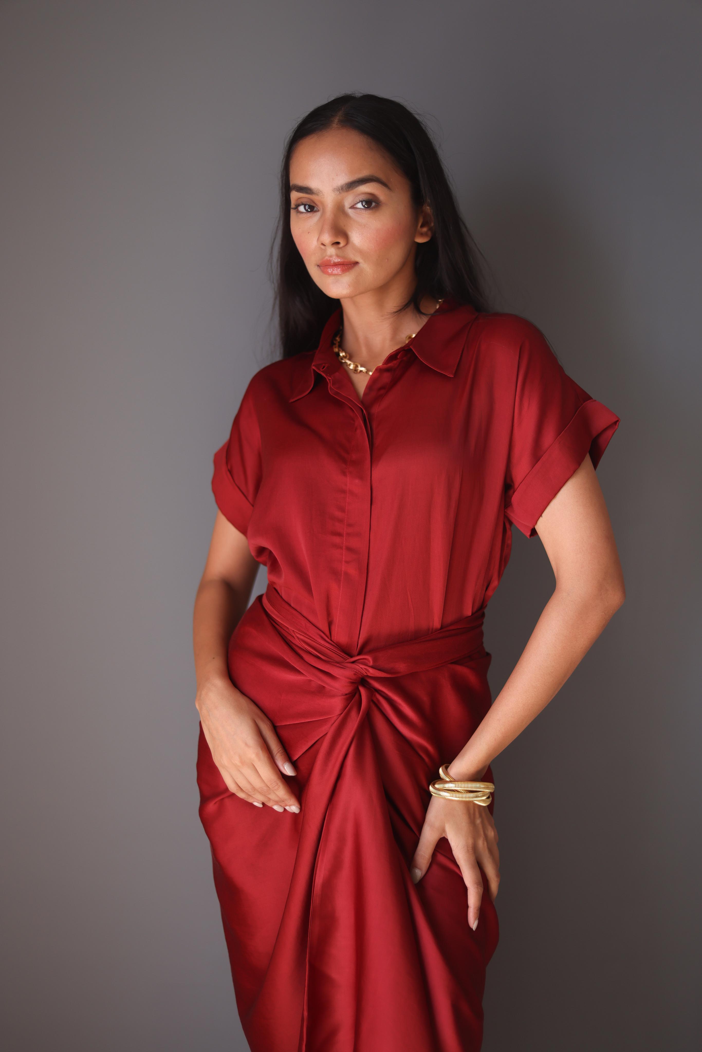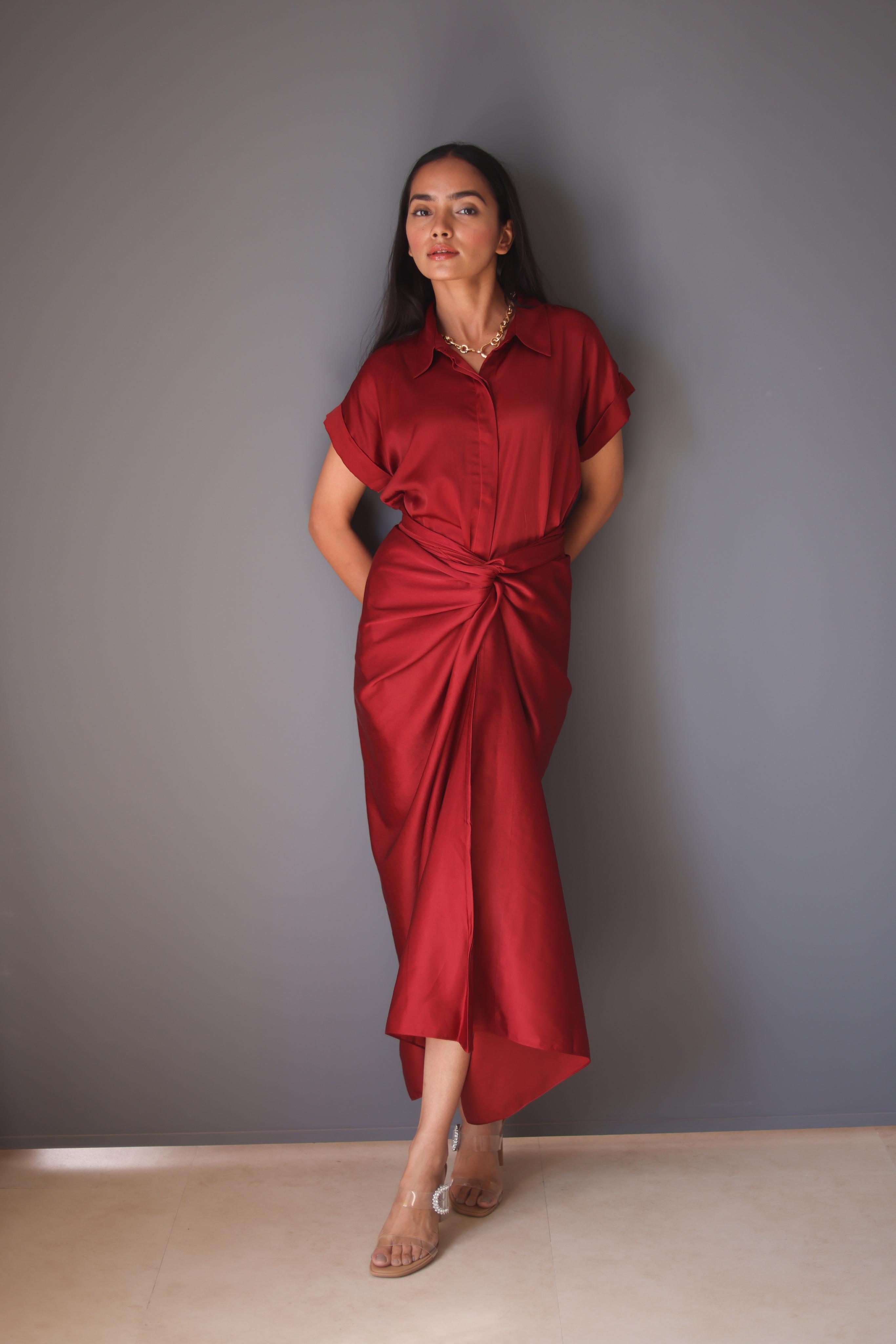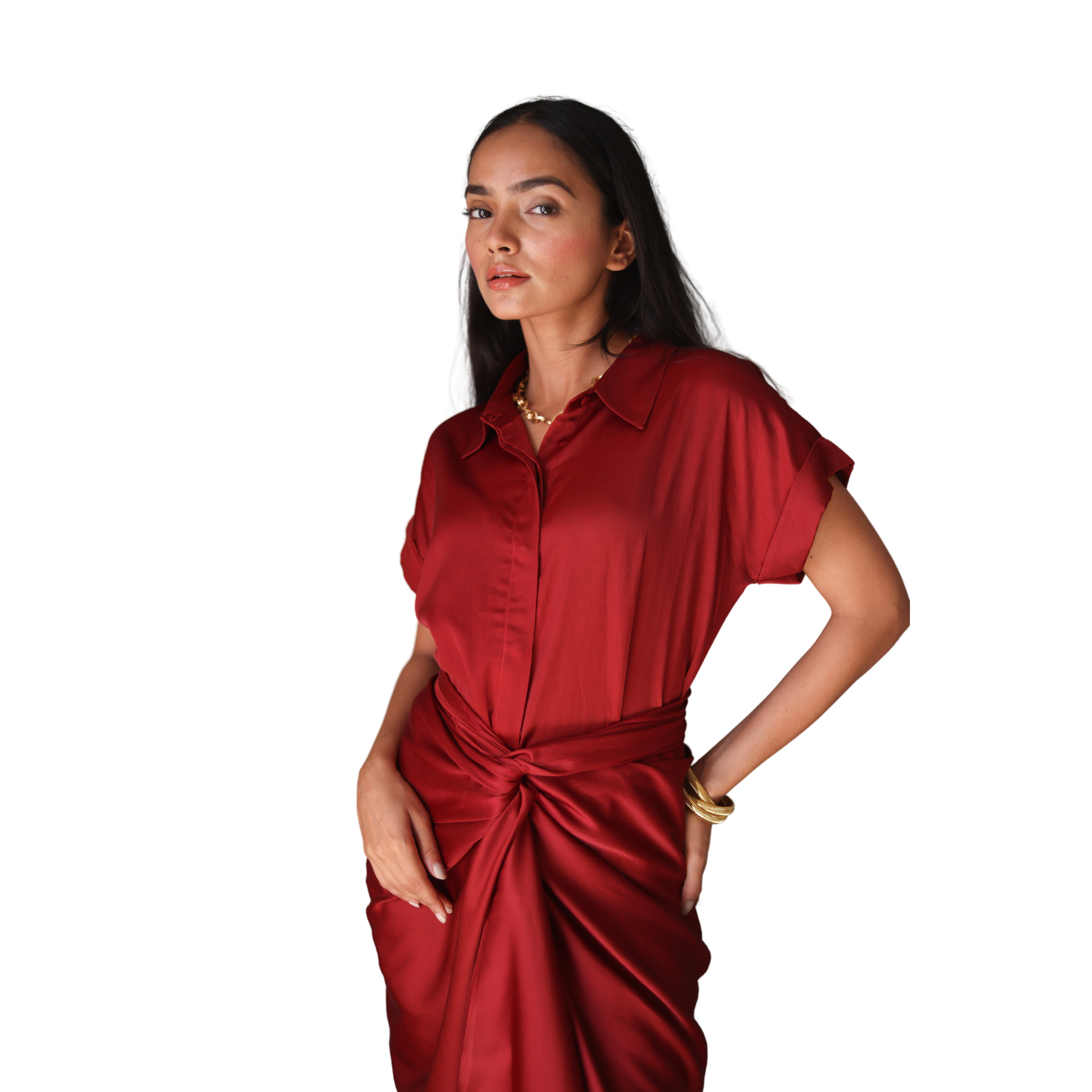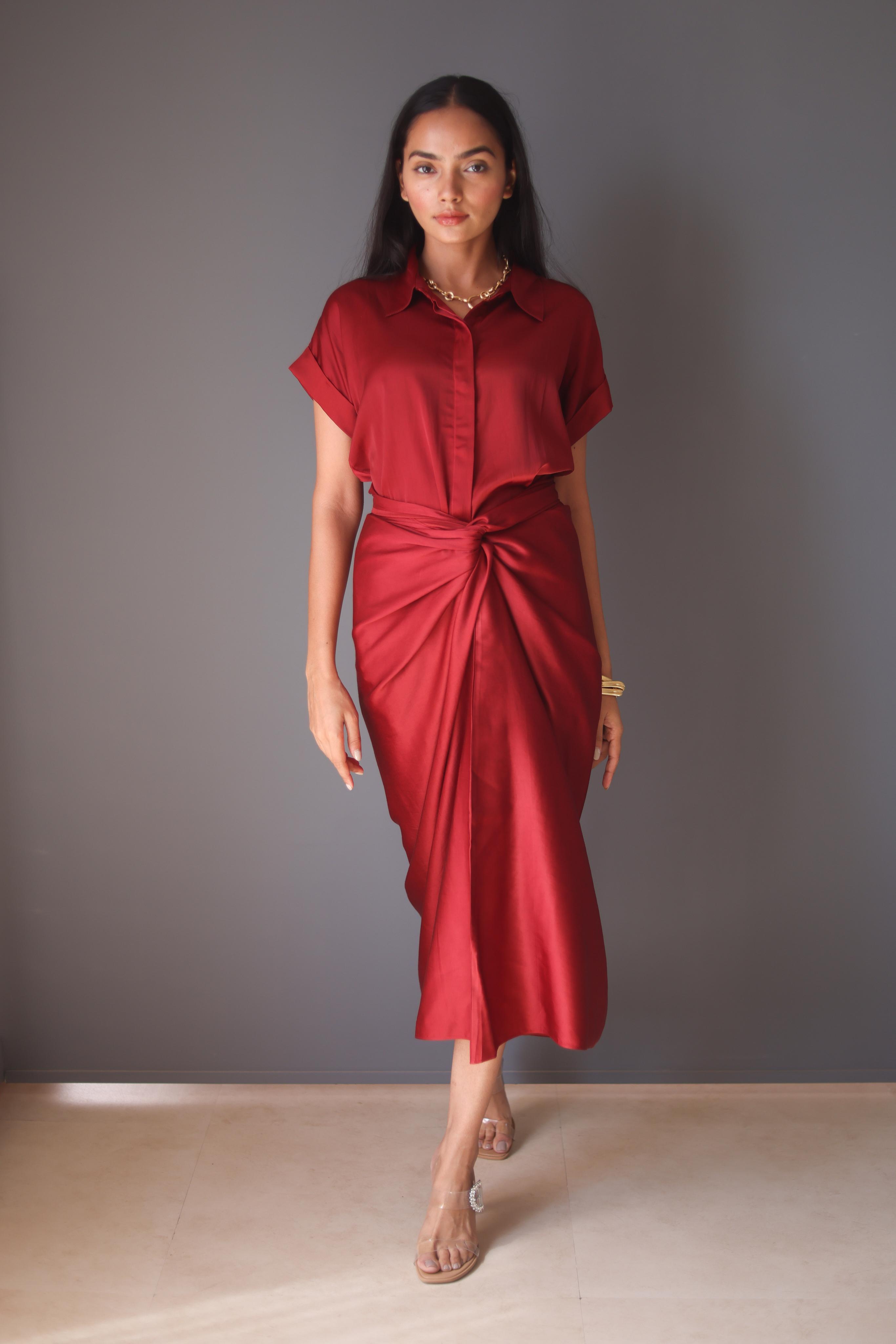 Nouria's must-have coord set, has a Mia Shirt and a Tina skirt . The bottom sarong skirt can be tied up in multiple ways that looks stunning on all versatile body.