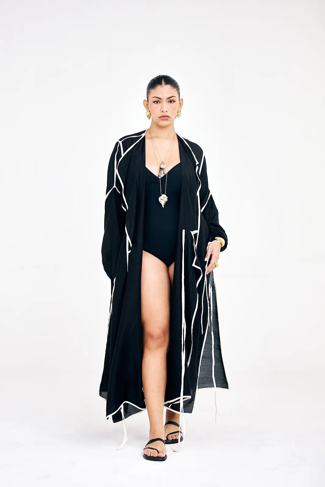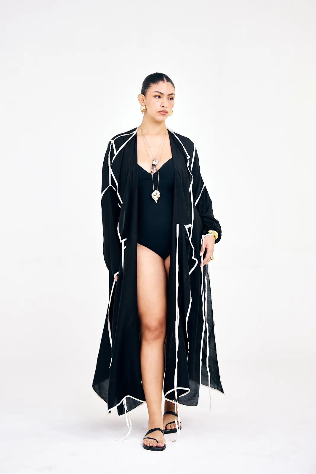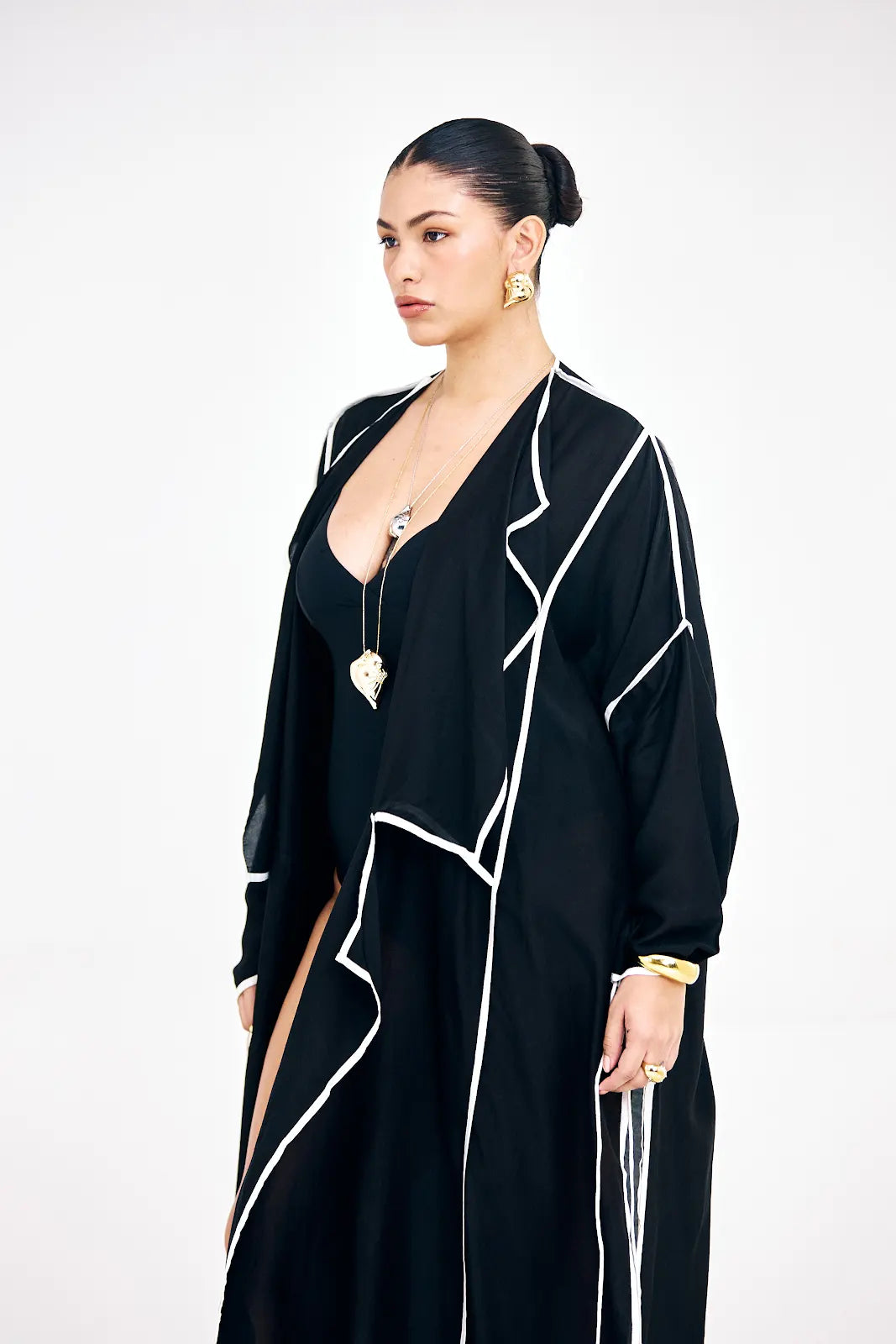 This relaxed-fit jacket in cotton silk features contrast piping that adds a sharp, modern edge to its effortless silhouette.