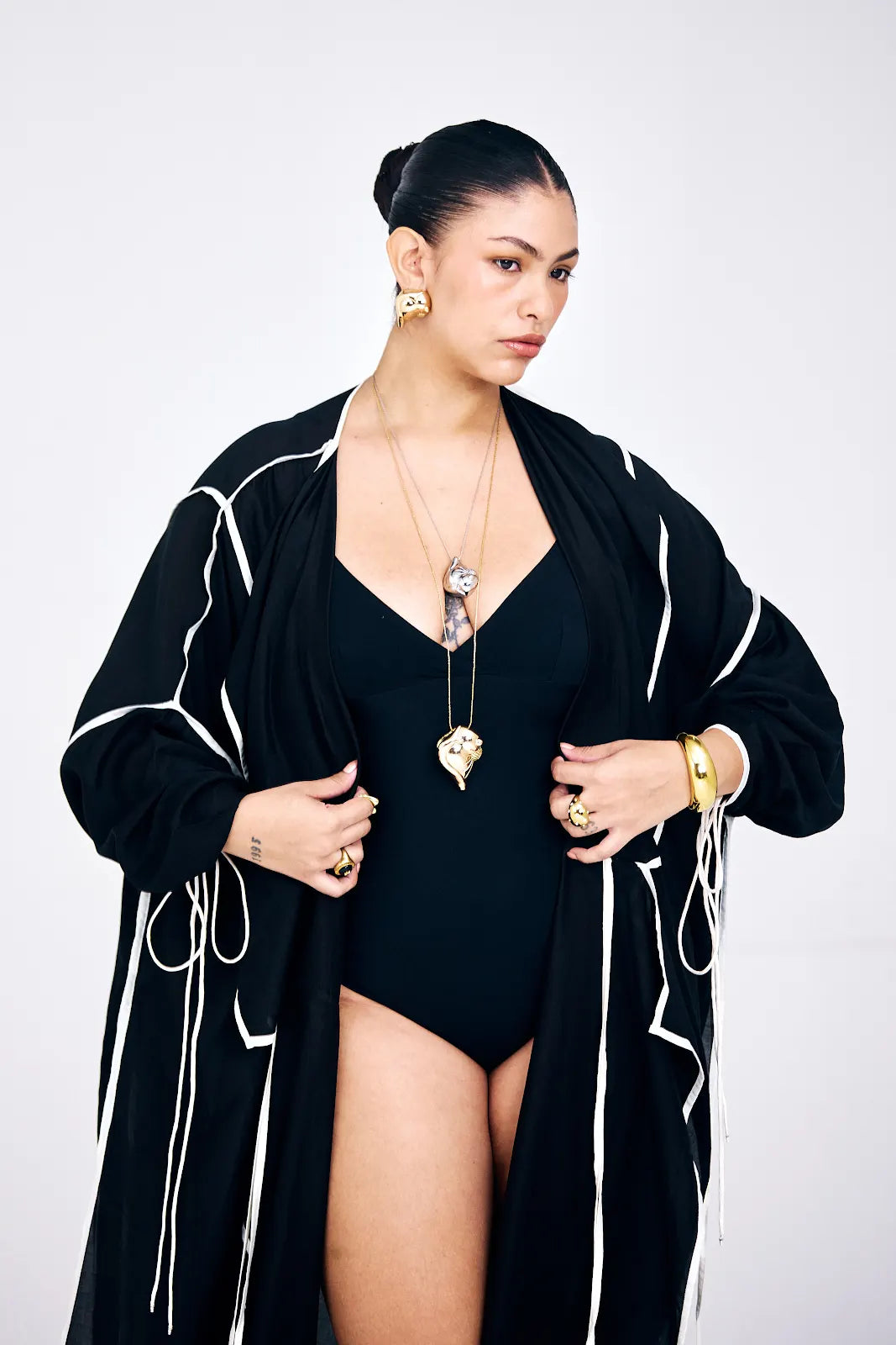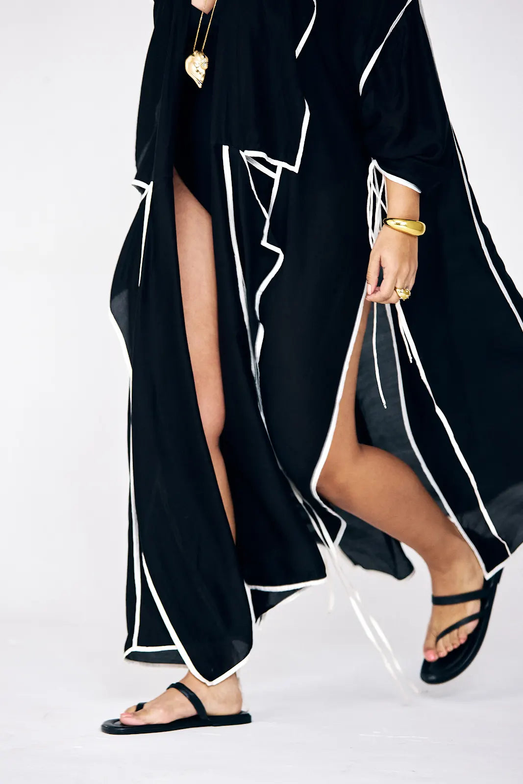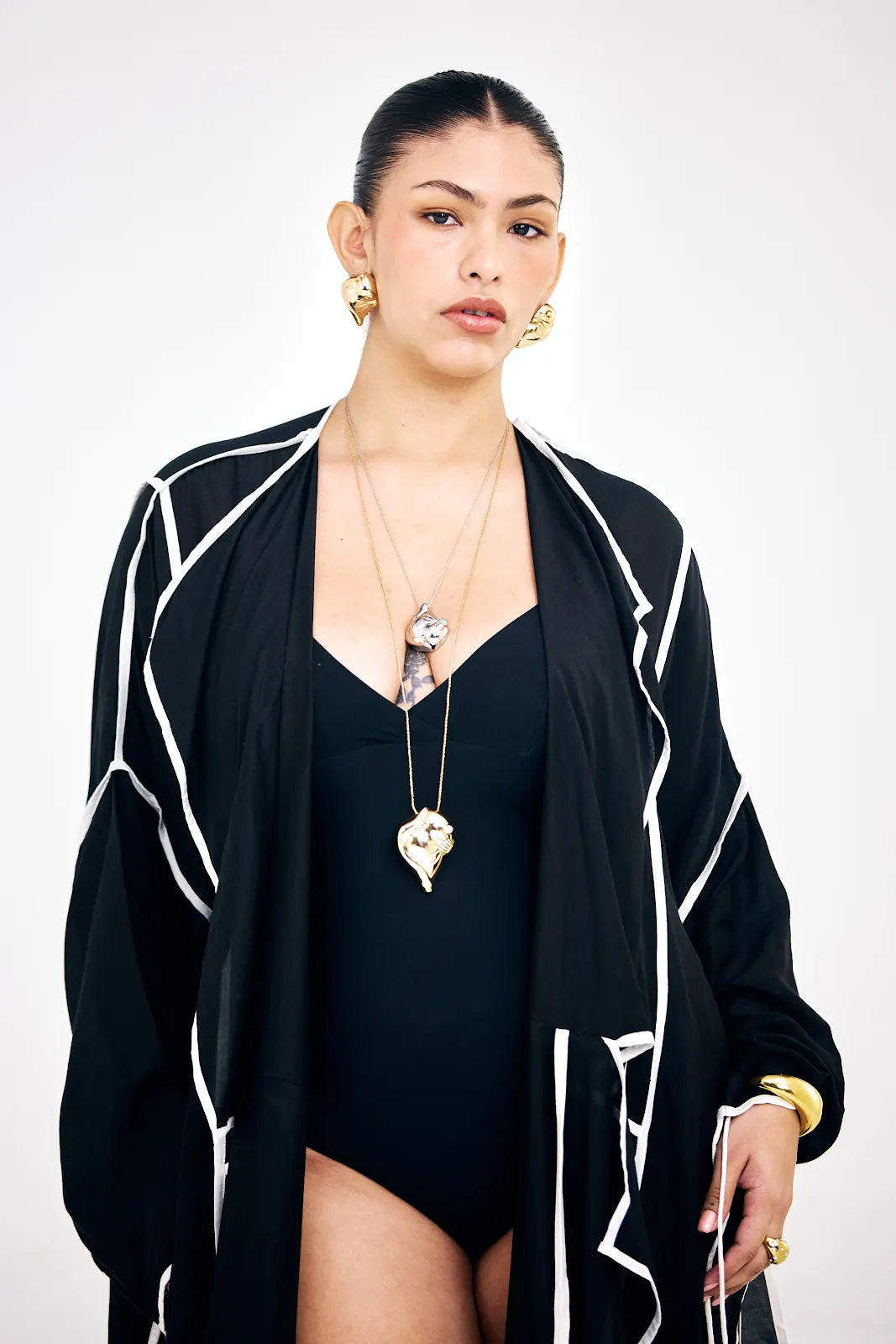 This relaxed-fit jacket in cotton silk features contrast piping that adds a sharp, modern edge to its effortless silhouette.