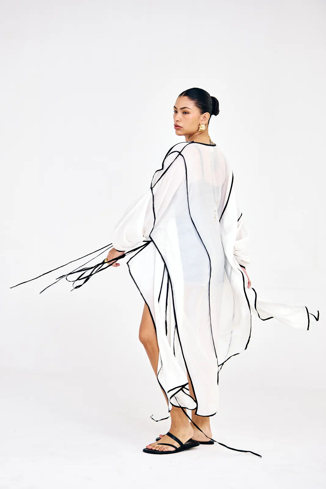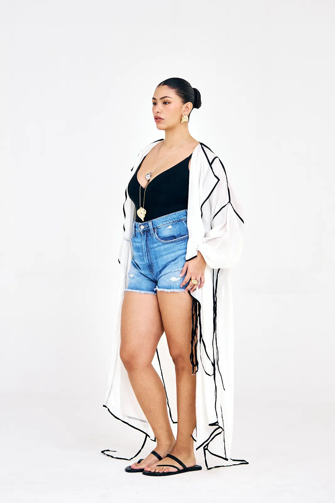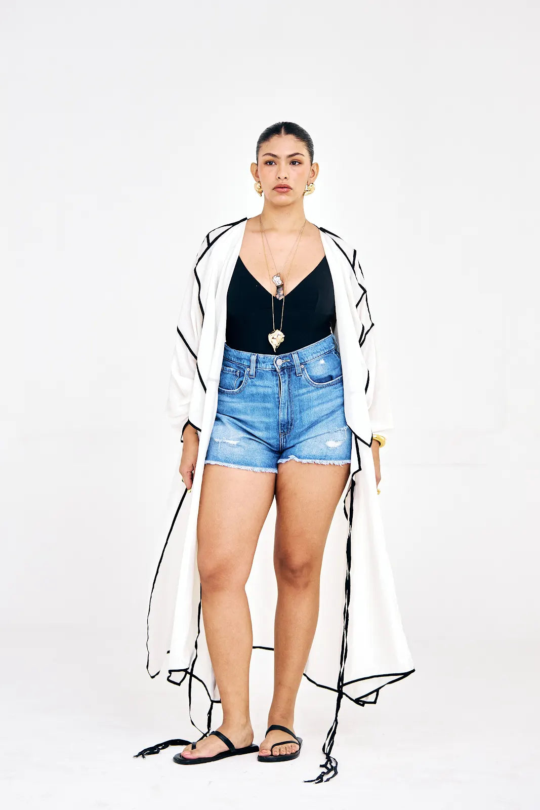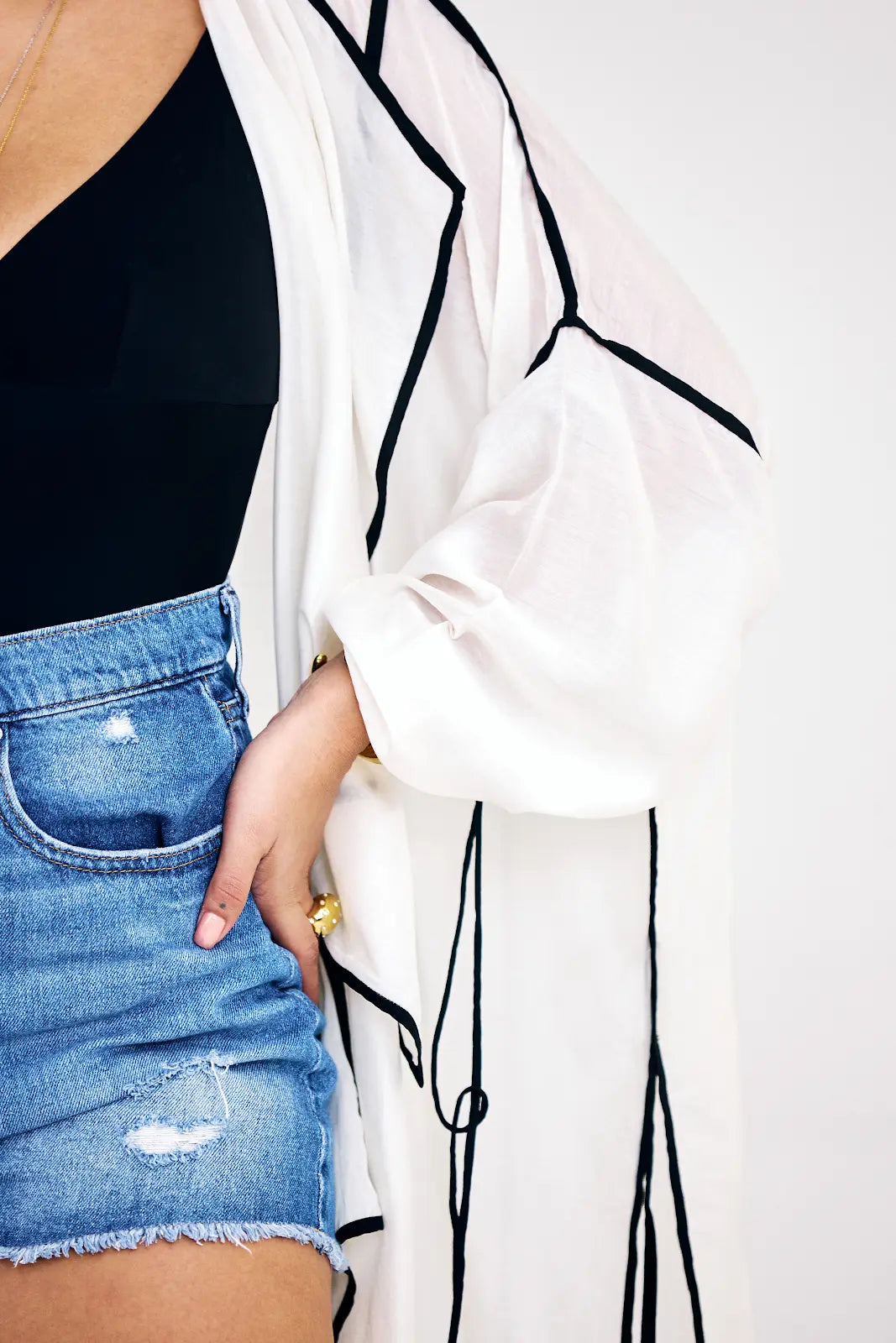 This relaxed-fit jacket in cotton silk features contrast piping that adds a sharp, modern edge to its effortless silhouette.
