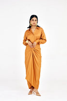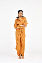 Introducing our Nouria slim fit shirt paired flawlessly with our innovative tie-up drape skirt. The sarong skirt's versatile design allows it to be tied up in multiple captivating ways, ensuring a stunning look for all body types. Elevate your style with this dynamic combination, exuding elegance and versatility at every turn.