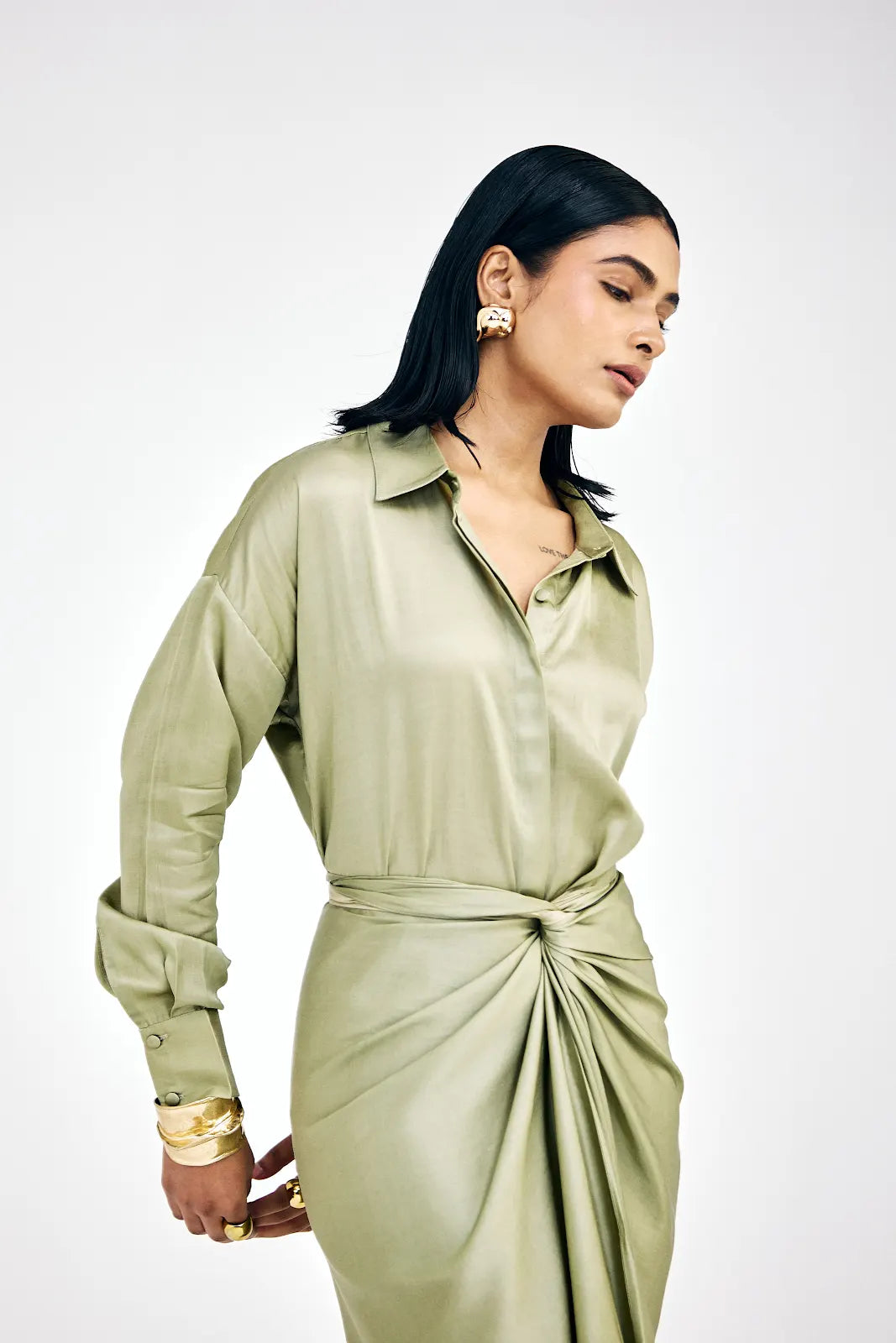 Introducing our Nouria slim fit shirt paired flawlessly with our innovative tie-up drape skirt. The sarong skirt's versatile design allows it to be tied up in multiple captivating ways, ensuring a stunning look for all body types. Elevate your style with this dynamic combination, exuding elegance and versatility at every turn.