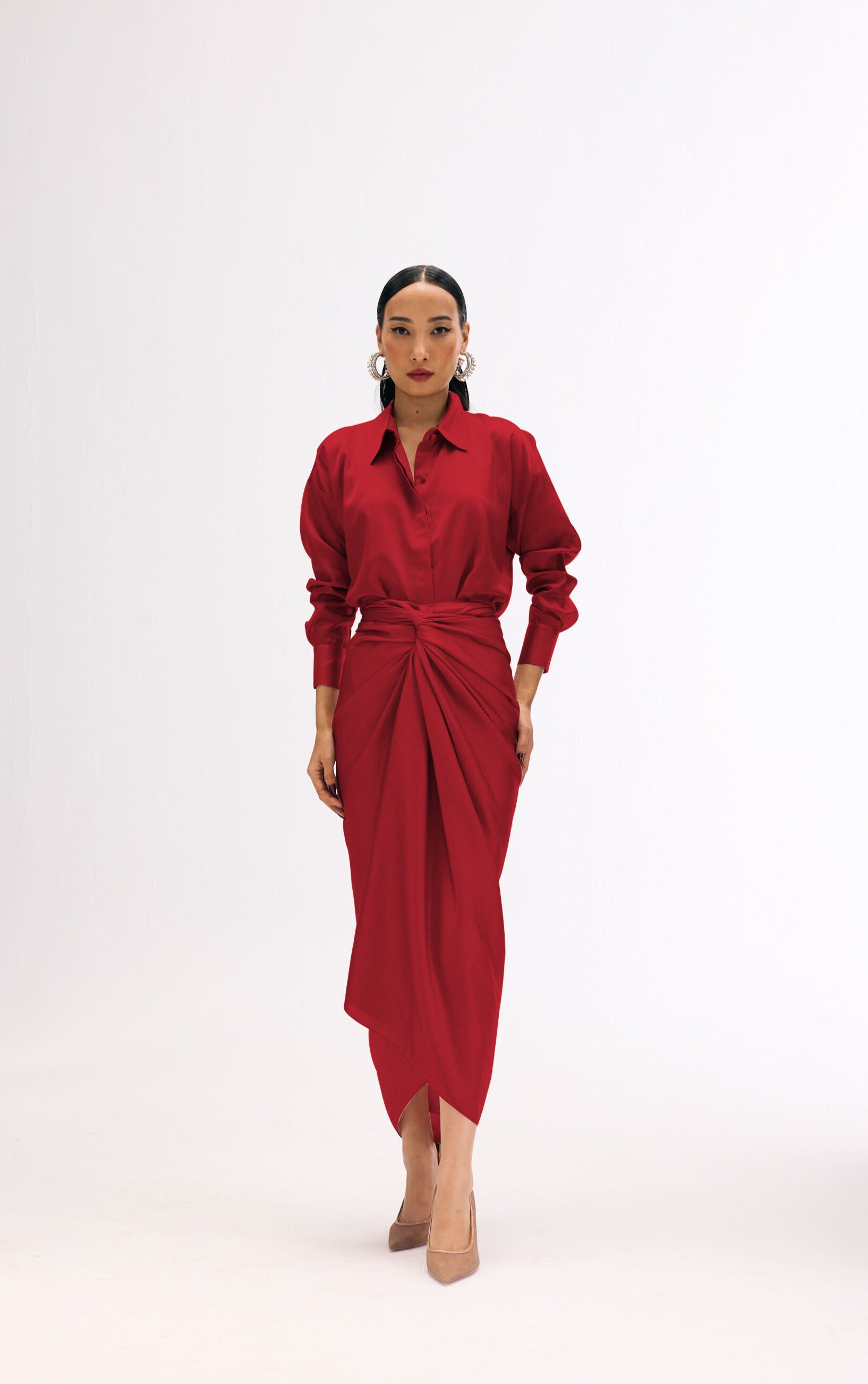 Nouria's must-have coord set, has Jenni shirt and a Tina skirt . The bottom sarong skirt can be tied up in multiple ways that looks stunning on all versatile body.