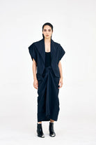Our best-selling Tina Skirt makes a comeback this season. Crafted in cotton twill in navy blue, it features our signature draped structure that has become a classic Nouria silhouette. A versatile wardrobe staple, it can be paired with the Phoenix Jacket in navy blue for a coordinated look or styled separately to suit your mood and occasion.