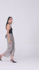 Wash Care: This garment is dry clean only and should be steamed lightly without heavy pressing. Do not spot clean. When ironing or steaming, always cover and protect hardware, zippers, and delicate detailing. For best results, turn the garment inside out before dry cleaning to preserve the fabric and embellishments.